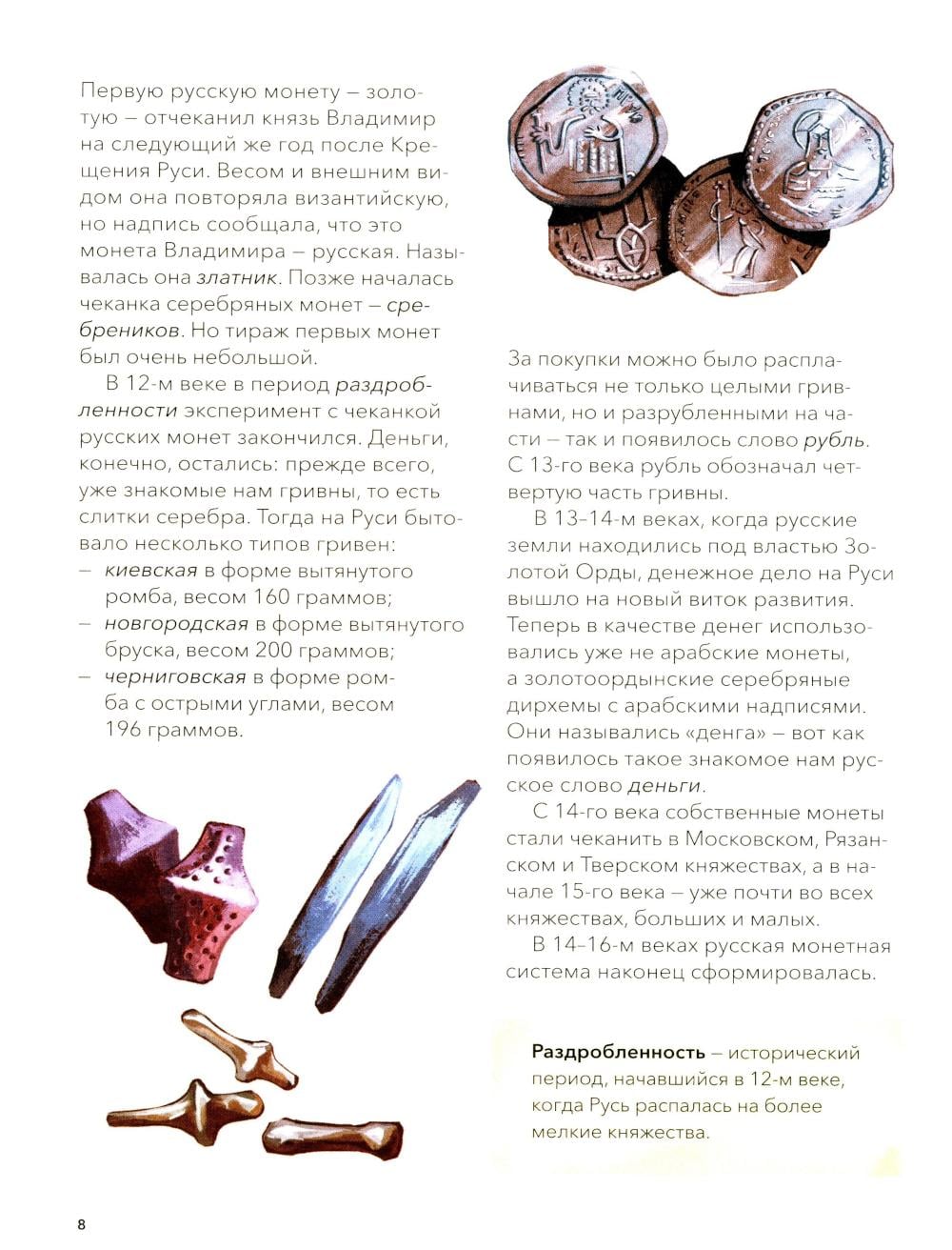 Книга из серии «Наша страна Россия. Как жили на Руси», в которой собраны небольшие красочные издания по 16 страниц, созданные специально для первого чтения и занятий с детьми. Простые тексты, написанные историками и этнографами, и яркие иллюстрации помогут ребенку увидеть, как жили наши предки, научат бережно относиться к истории и ценить традиции своей страны. Чем платили за товары на Руси? Что везли купцы на торжище? И на чем они передвигались? Как выглядел первый златник и что покупали за копейку? Книга расскажет о том, как торговали наши предки, - о древних торговых путях и шумных ярмарках. Вы узнаете, кто такие гости и коробейники, какие товары продавали прасолы и что хранили в купеческих амбарах. А еще - какие меры веса использовали, зачем взвешивали монеты и какие пошлины платили торговые люди.