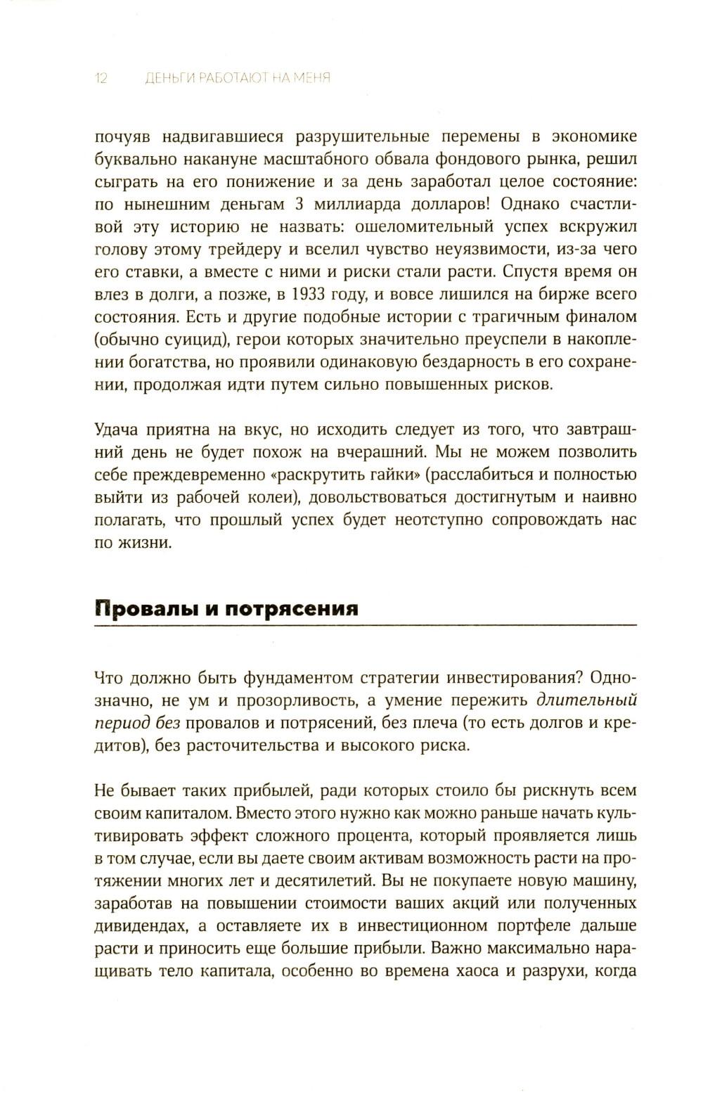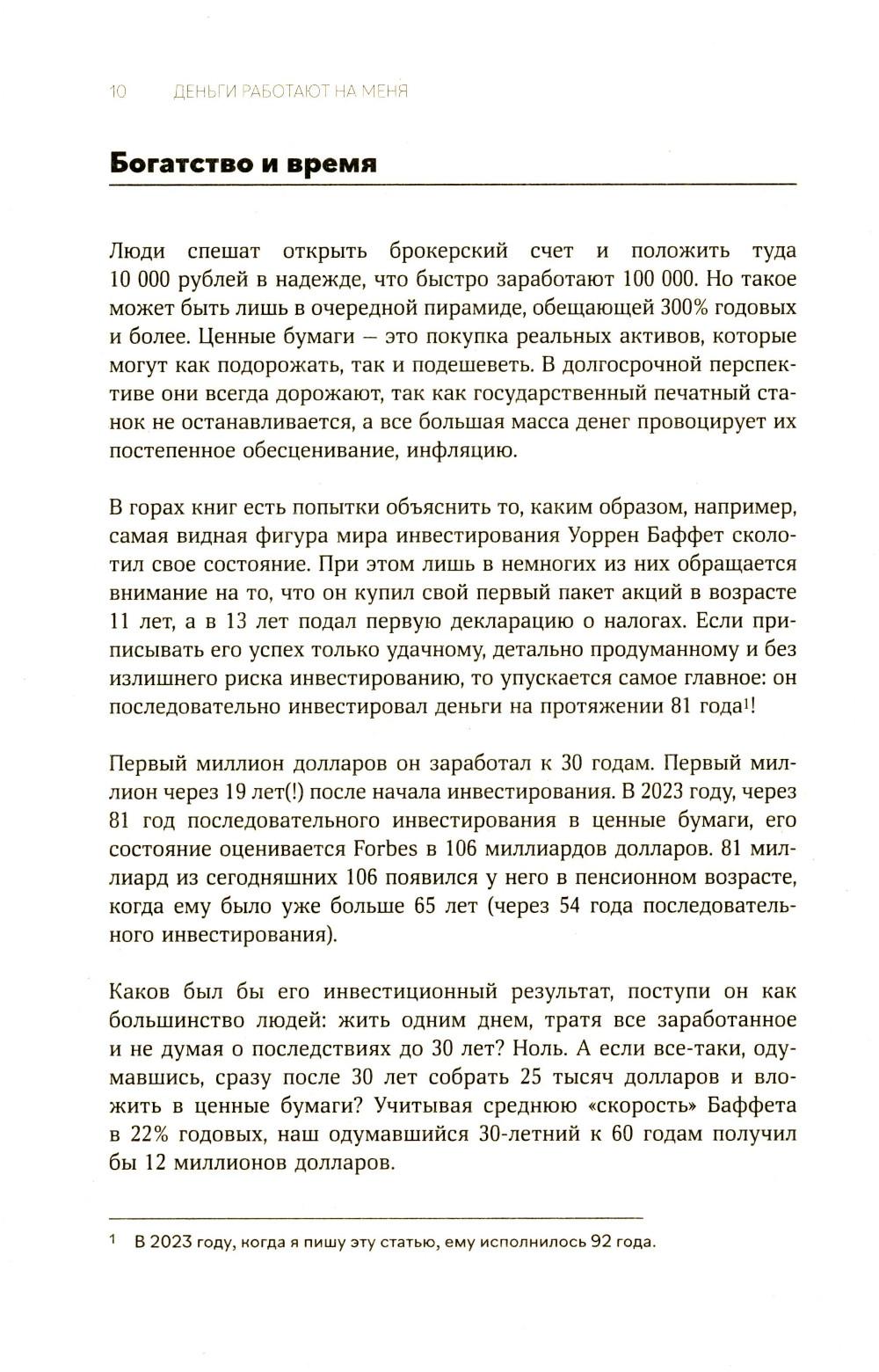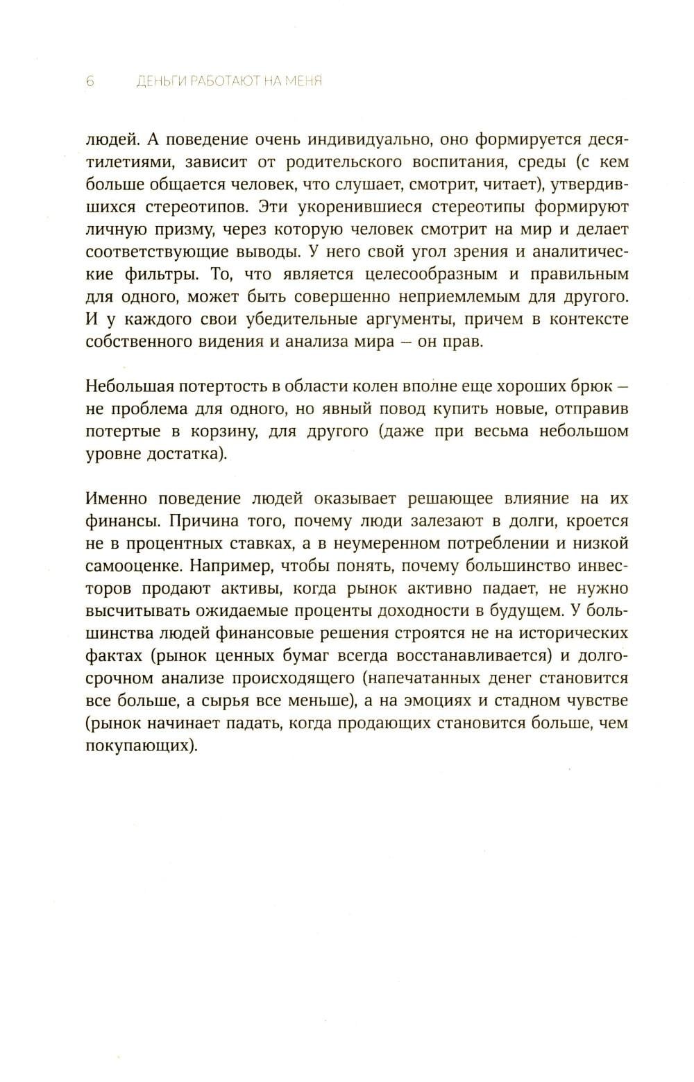 О чем эта книга? О том, как быстрее реализовать жизненный этап «Деньги работают на меня». Книга реально приближена к действительности. Никакой финансовой «воды» и пустословия. Сам автор реализовал этап «Деньги работают на меня» в 2012 году, не растеряв его в последующие годы, а лишь нарастив и приумножив. Это - четвертая книга автора о финансах. Первые три - «Финансы Триллионера», «Подсознательные бедность и богатство», «Деньги под контролем». Если же принять во внимание все книги, написанные автором, то данная книга 34-я по счету. Первая вышла в 1999 году и до сих пор переиздается.| Издательство | Диля |