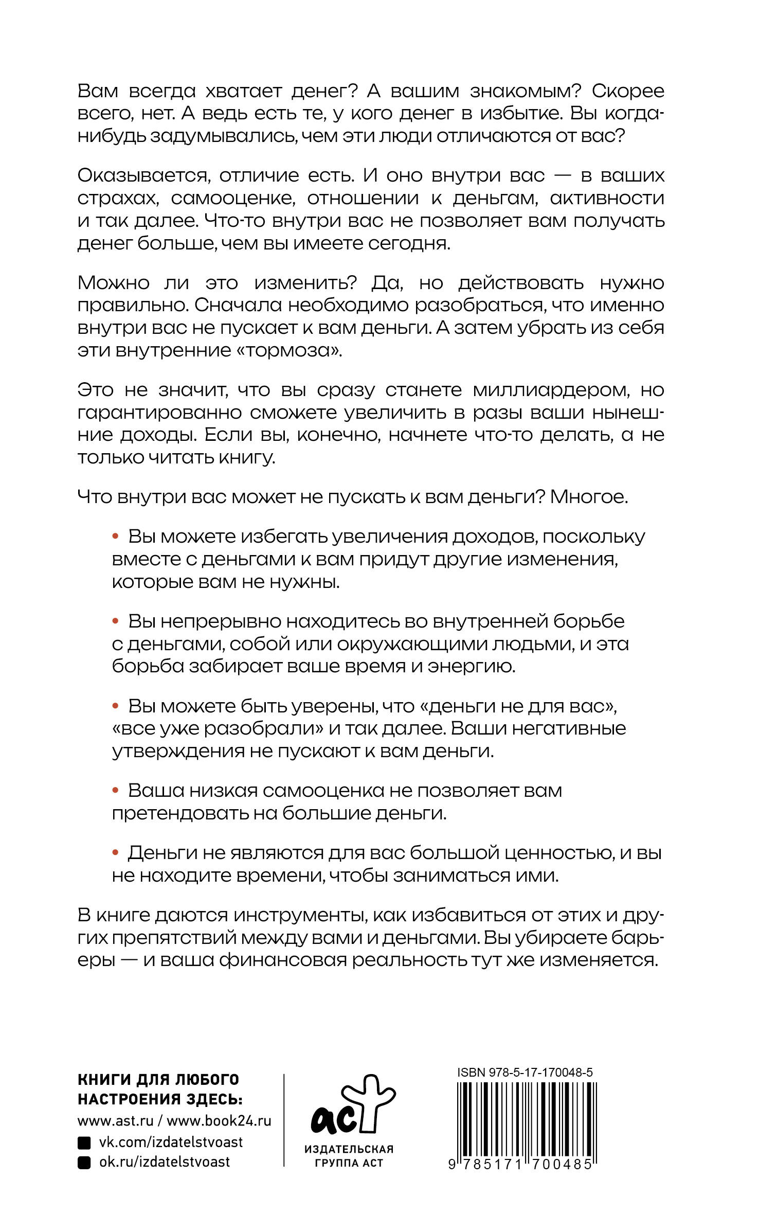 Аннотация: Деньги внутри вас. Уберите барьеры перед деньгами