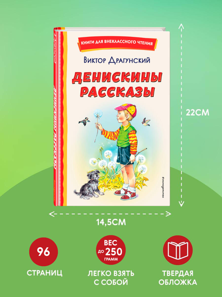 Серия «Книги для внеклассного чтения» - это подборка главных произведений русских и зарубежных авторов, входящих в школьную программу. Лучшие произведения детской литературы с цветными иллюстрациями помогут привить ребёнку любовь к чтению. Замечательные рассказы Виктора Драгунского про Дениску Кораблёва понравятся любому ребёнку, ведь главный герой - обычный мальчик, который тоже ходит в школу, гуляет с друзьями, но постоянно попадает в смешные ситуации. Весёлые истории о детстве и дружбе никого не оставят равнодушными. Классика детской литературы, от которой невозможно оторваться!| Издательство | Эксмо |