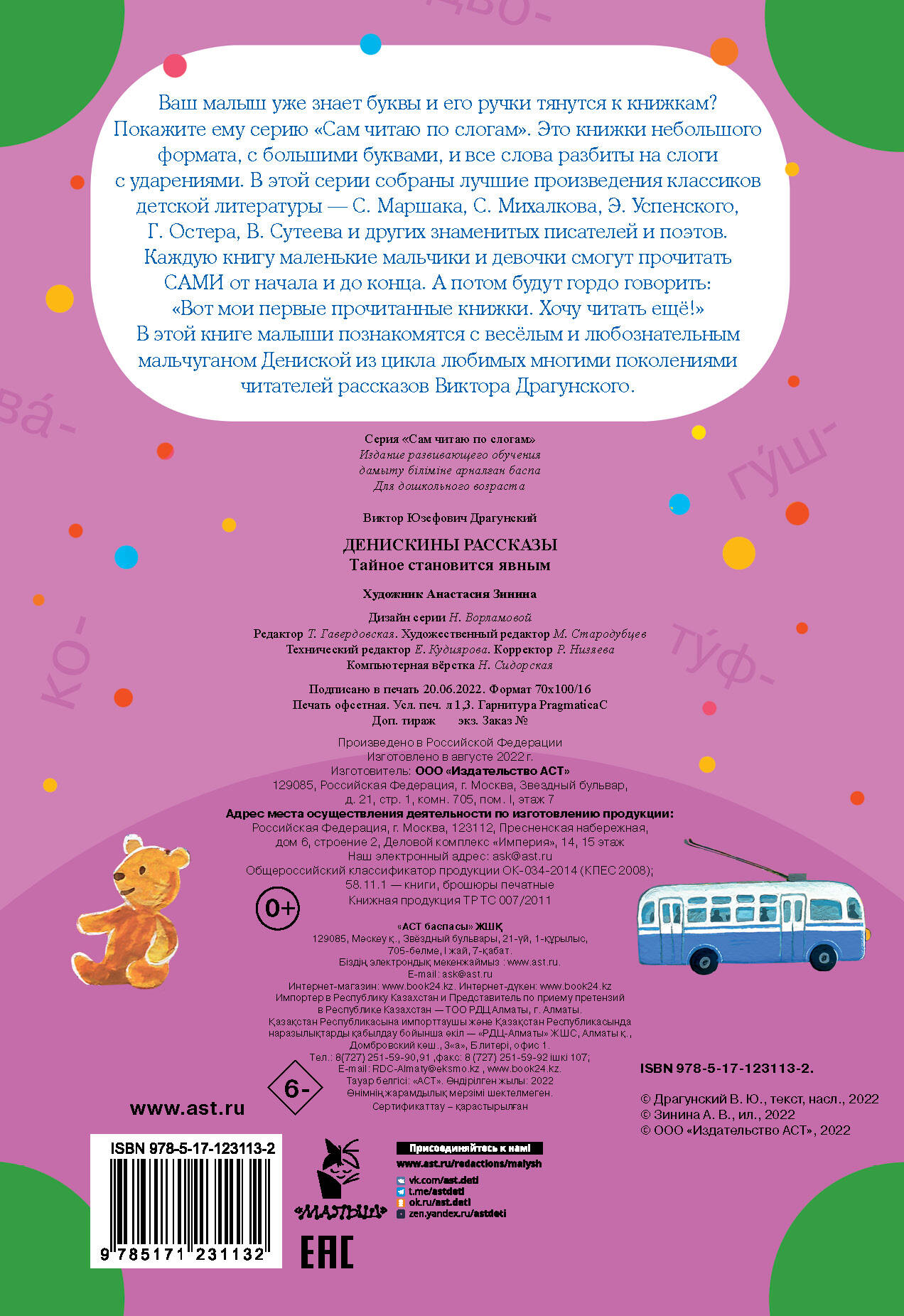 Крупный шрифт, разбивка на слоги, ударения, запоминающиеся цветные иллюстрации - в книгах серии "Сам читаю по слогам" есть всё необходимое для формирования у ребенка прочного навыка чтения и стимулирования устойчивого интеререса к книге. А еще это прекрасная возможность познакомиться с лучшими произвелениями любимых детских авторов, многие из которых стали неотъемлемой частью отечественной культуры. Знать их - признак образованного, культурного человека. Идеальное сочетание "цена-качество! Книги не будут обременительны для семейного бюджета и принесут массу пользы, создадут прекрасное настроение. Истории В. Драгунского входят в школьную программу и научат малышей честности, дружбе и щедрости.| Издательство | ИЗДАТЕЛЬСТВО "АСТ" |
