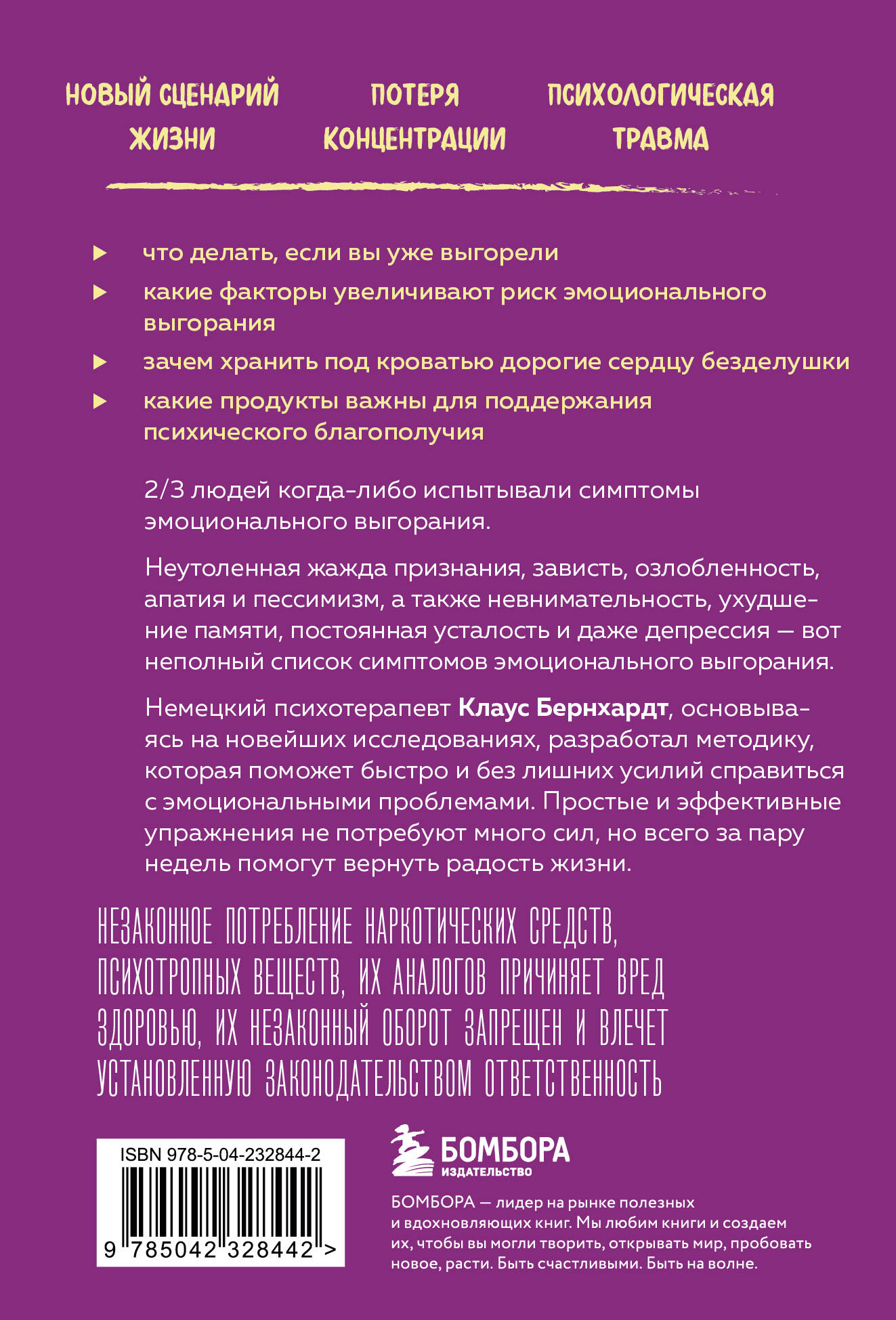 НЕЗАКОННОЕ ПОТРЕБЛЕНИЕ НАРКОТИЧЕСКИХ СРЕДСТВ, ПСИХОТРОПНЫХ ВЕЩЕСТВ, ИХ АНАЛОГОВ ПРИЧИНЯЕТ ВРЕД ЗДОРОВЬЮ, ИХ НЕЗАКОННЫЙ ОБОРОТ ЗАПРЕЩЕН И ВЛЕЧЕТ УСТАНОВЛЕННУЮ ЗАКОНОДАТЕЛЬСТВОМ ОТВЕТСТВЕННОСТЬ. Когда человек страдает от депрессии или выгорания, ему одиноко, он опустошен и испытывает упадок сил. Глубокая и, как кажется, беспричинная тоска, ощущение, будто человек уже не может справиться ни с кем и ни с чем, практически пожирает личность изнутри. Однако груз страданий давит не только на него самого, но и на его близких. Из-за дня в день они наблюдают, как их любимый человек стремительно теряет всяческий интерес к жизни и замыкается в себе. Поэтому данная книга предназначена не только для страдающих от депрессии, но и для всех тех, кто хочет помочь своим близким вернуться к нормальной жизни. Возможно, вам сейчас вам не верится, но вы способны сделать гораздо больше, чем можете себе представить!| Издательство | ООО "Издательство "Эксмо" |