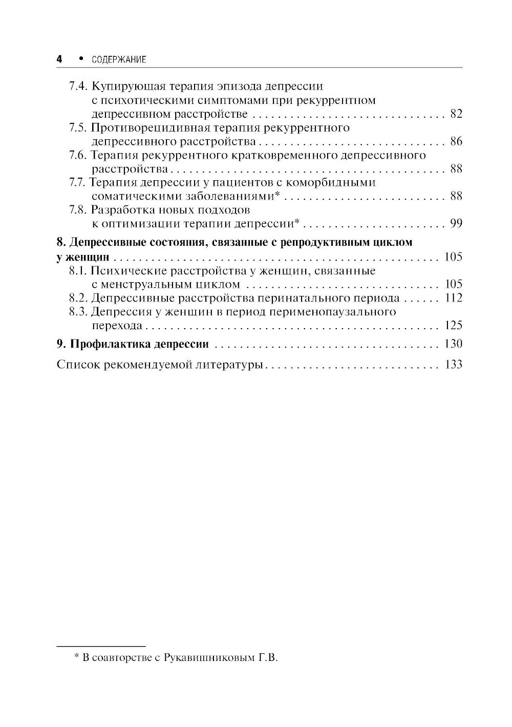 В третьем, переработанном и дополненном издании книги изложены современные данные о патофизиологических механизмах формирования, принципах диагностики депрессивного расстройства. Подробно рассмотрены вопросы проведения лекарственной терапии и методы преодоления терапевтической резистентности у пациентов с депрессией. Отражены клинические особенности и специфические терапевтические подходы при депрессиях, связанных с репродуктивным циклом у женщин. Данное издание поможет лучше понять проблемы депрессии, подходы к психофармакотерапии и возможности использования фармакотерапии для купирования депрессивного эпизода и проведения противорецидивного лечения. Предназначено психиатрам, неврологам, психотерапевтам, семейным врачам, а также ординаторам и врачам, проходящим обучение в системе дополнительного профессионального образования по психиатрии.