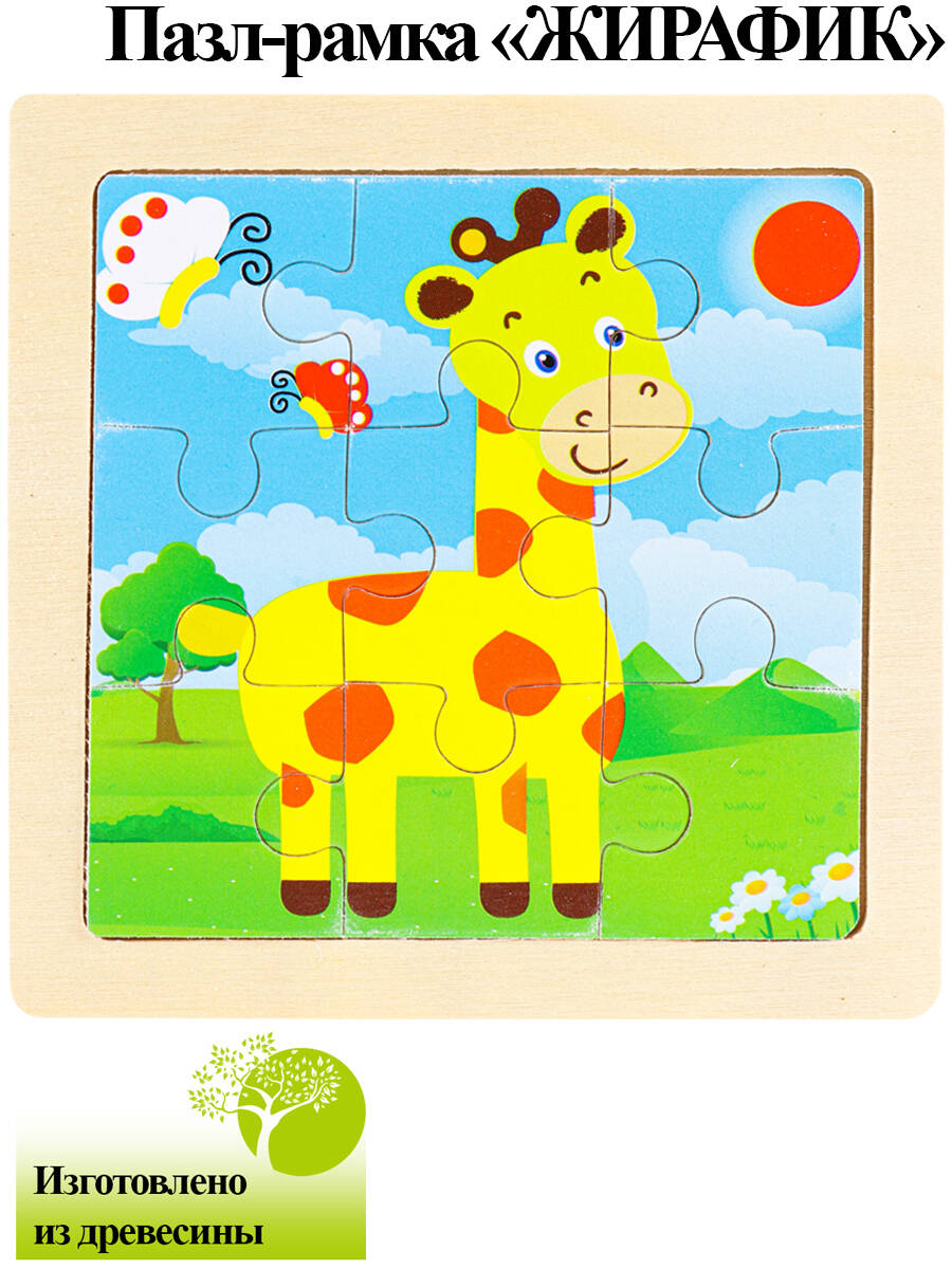Деревянная пазл-рамка (11х11) "ЖИРАФИК" (9 элементов)(неокраш.рамка) Арт.AN02298