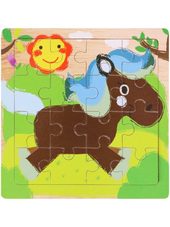 Деревянная пазл-рамка (14,5х14,5 см) "Лошадка на прогулке" (16 элементов) ( Арт. ИД-0137)