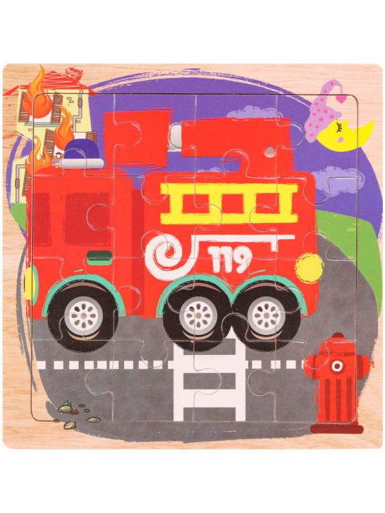 Деревянная пазл-рамка (14,5х14,5 см) "Пожарная машинка" (16 элементов) ( Арт. ИД-0132)