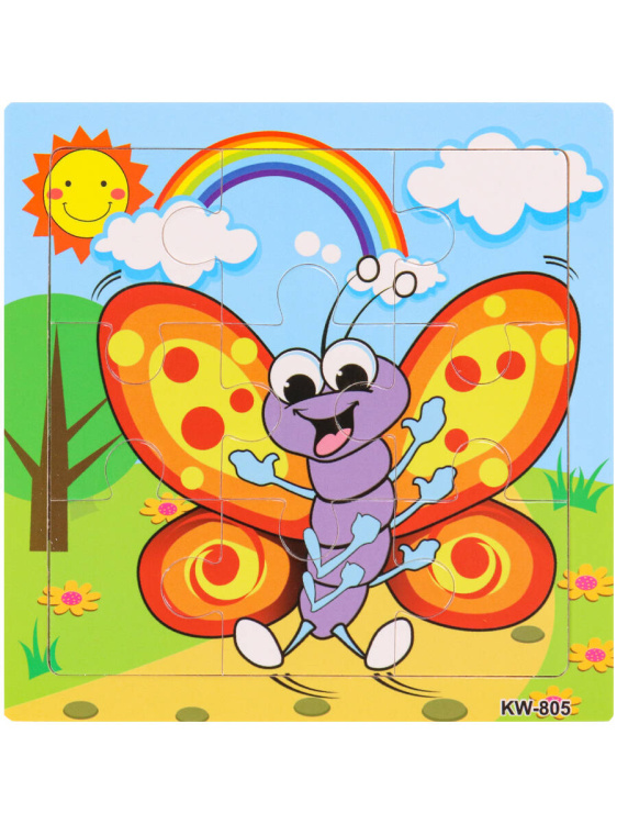 Аннотация: Деревянная пазл-рамка (15х15х0,5 см) "Бабочка" (9 элементов) ( Арт. ИД-0124)