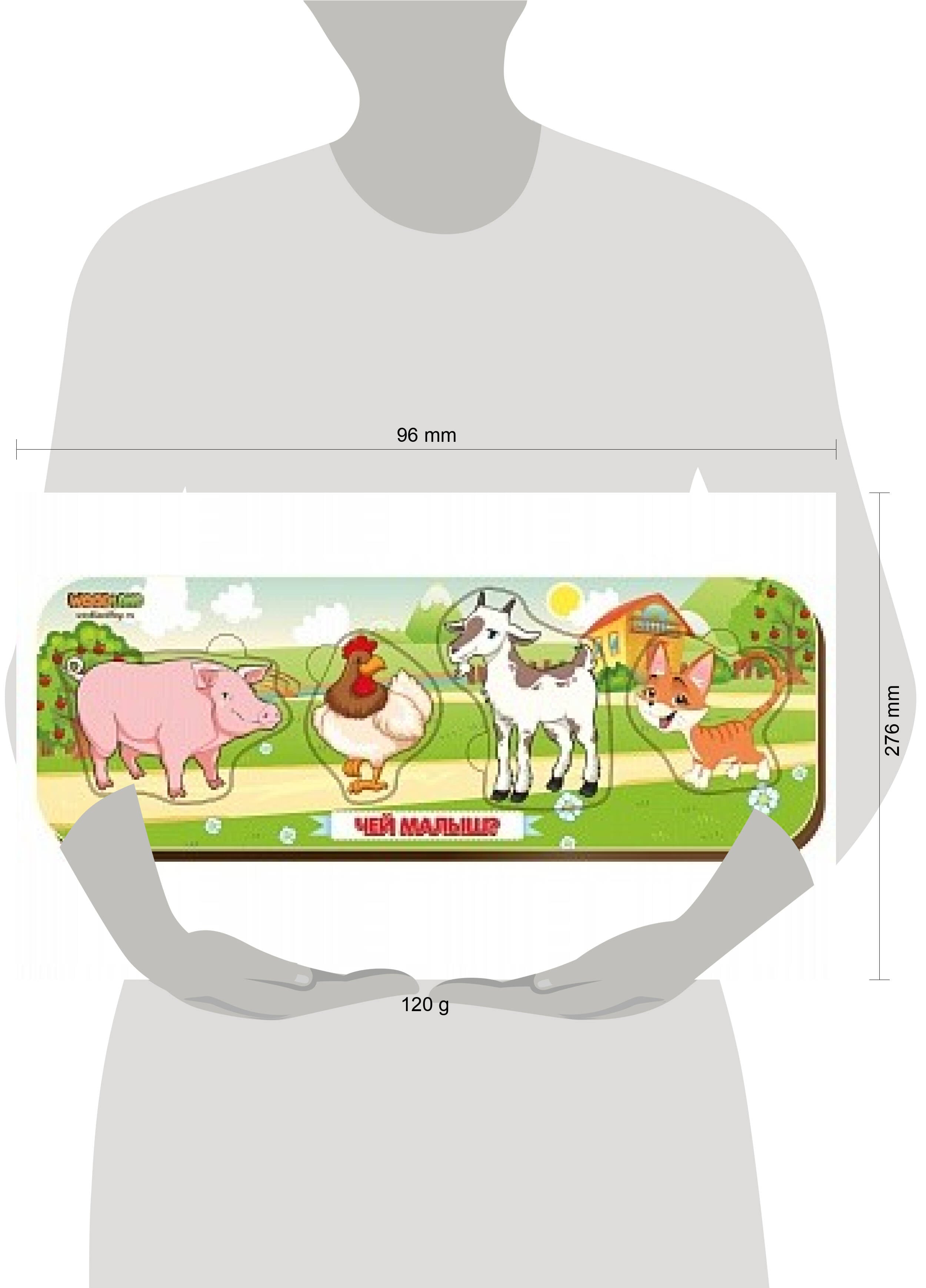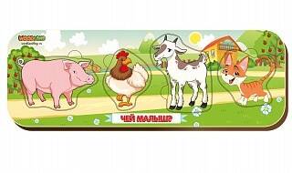 Аннотация: Деревянная рамка-вкладыш двойная «Чей малыш?», свинья-петух-козел-кот (Арт. 011904)