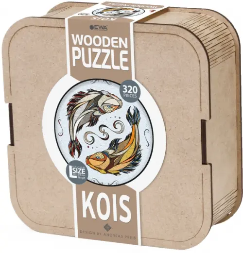 Деревянный пазл для детей и взрослых, фигурный пазл с уникальными деталями Eco Wood Art "Рыбы Карпы Кои" размера L - это настоящая головоломка, ваша ловкость может пригодиться в сборке. Пазл изготовлен по оригинальной иллюстрации знаменитого художника Андреаса Прайса.