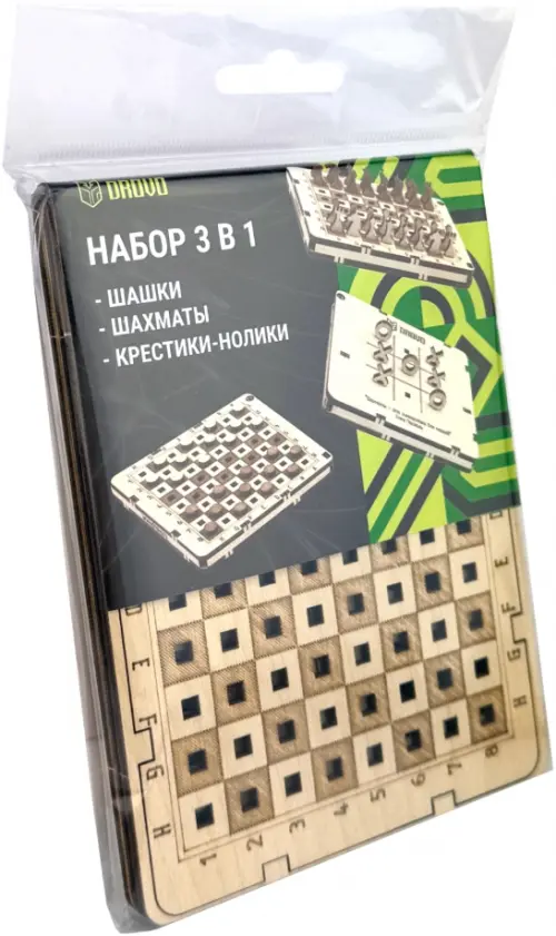 Деревянный конструктор DROVO "Игровой набор 3 в 1" станет замечательным подарком не только для ребенка, но и для взрослого на любой праздник. А все потому, что это не просто сборная модель, но еще и сборник дорожных игр! Вы сможете взять этот набор в дорогу и играть в 3 игры на выбор (крестики-нолики, шахматы или шашки). Поэтому деревянную модель можно подарить мальчику, девочке, родителям, друзьям и коллегам.