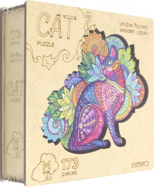 Деревянный пазл с двухслойной крышкой Кошка, 173 детали