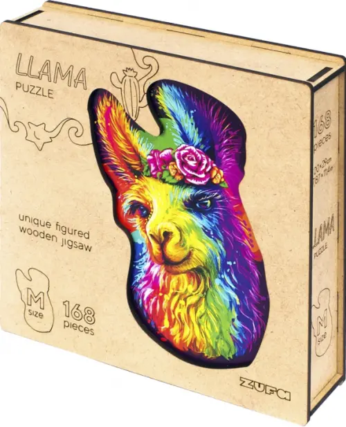 Деревянный пазл с двухслойной крышкой Лама, 168 деталей