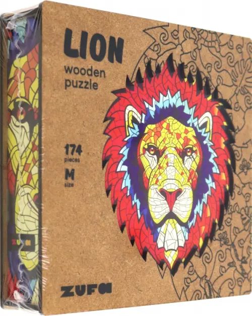 Деревянный пазл с двухслойной крышкой Лев, 174 детали