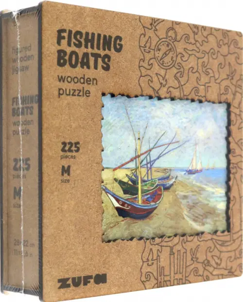 Деревянный пазл с двухслойной крышкой Рыбацкие лодки, 225 деталей