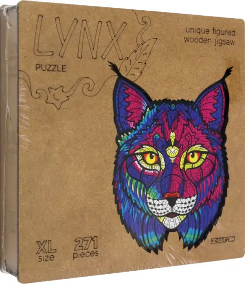 Деревянный пазл с двухслойной крышкой Рысь, 271 деталь