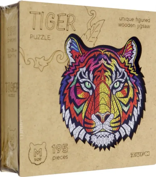Деревянный пазл с двухслойной крышкой Тигр, 175 деталей