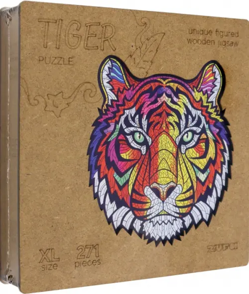 Деревянный пазл с двухслойной крышкой Тигр, 271 деталь