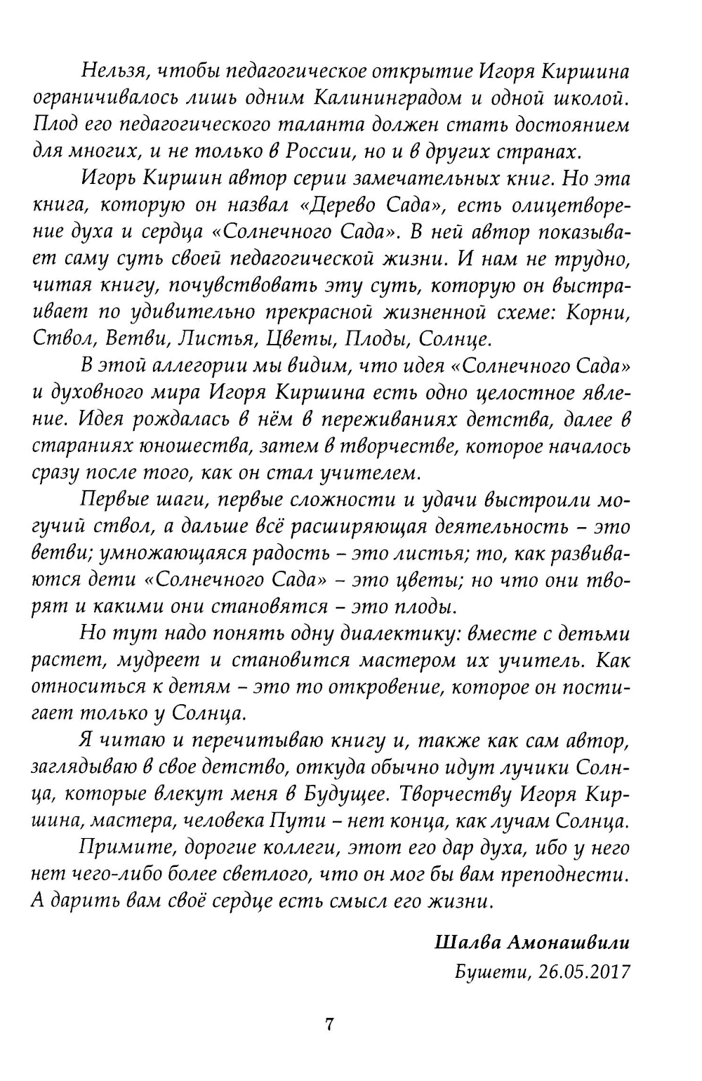 Игорь Киршин - Рыцарь гуманной педагогики, кандидат педагогических наук, преподаватель словесного творчества. В течении тридцати шести лет возглавляет известную студию «Солнечный Сад» в Калининграде. В книге описывается история развития студии в ярких художественных зарисовках: дружба с детьми и конфликты с ними, проблемы детей и сложности их взросления. Это книга о любви к детству. «Я работаю добрым гномом, выслушивателем детей. Когда я прихожу в студию, дети бросаются ко мне с криком: «Саныч пришёл!» И начинают рассказывать: подарили мячик, разбил коленку, посмотрел фильм «Чучело»! Каждого внимательно выслушиваю. Реагирую: любуюсь мячиком, рассматриваю коленку, обсуждаю «Чучело». Из этих разговоров потом рождаются мои уроки, походы, книги. Потому что сначала надо понять - о чём ребёнок мечтает. И помочь мечте сбыться: съездить на озеро, найти друга, сыграть в казаков. «Солнечный Сад» - место, где сбываются мечты». (Игорь Киршин)| Издательство | Книга |