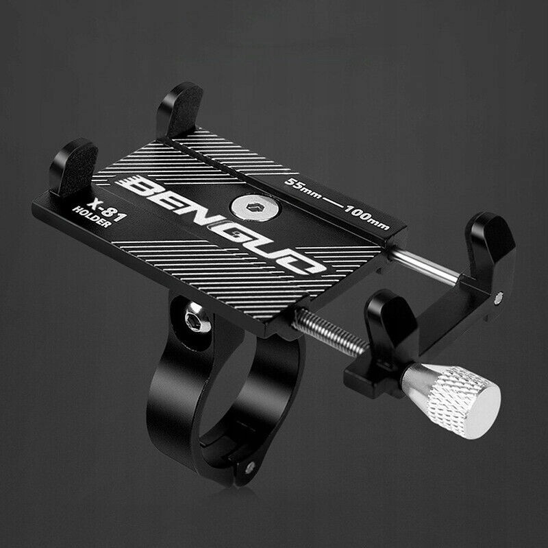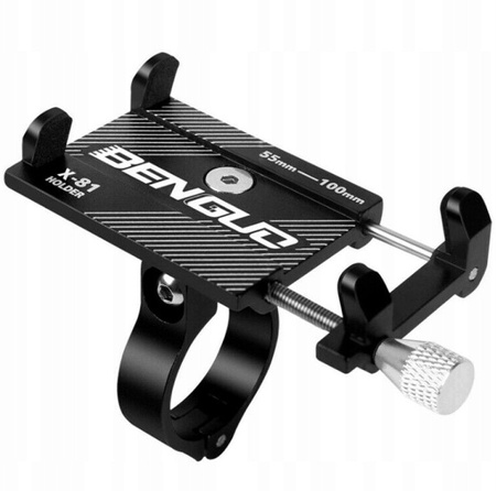 Benguo X-81 - универсальный держатель для телефона из алюминиевого сплава, предназначенный для установки на руль велосипеда. Цвет - черный. Этот держатель отличается простым дизайном, небольшим весом и широкой совместимостью с телефонами различной ширины и диаметра руля.