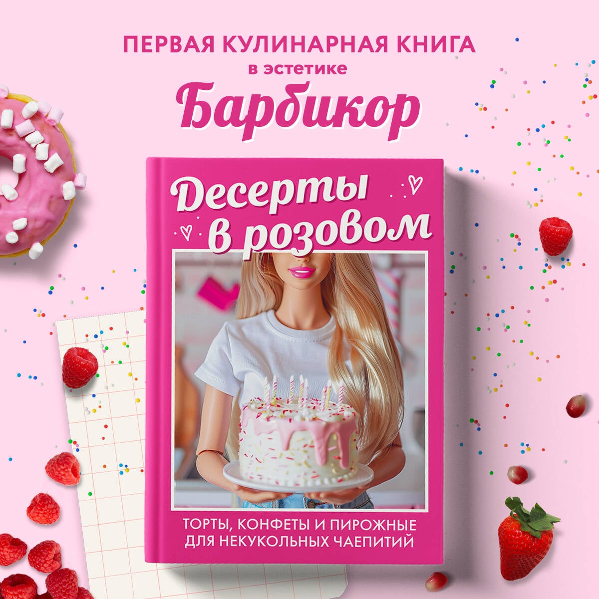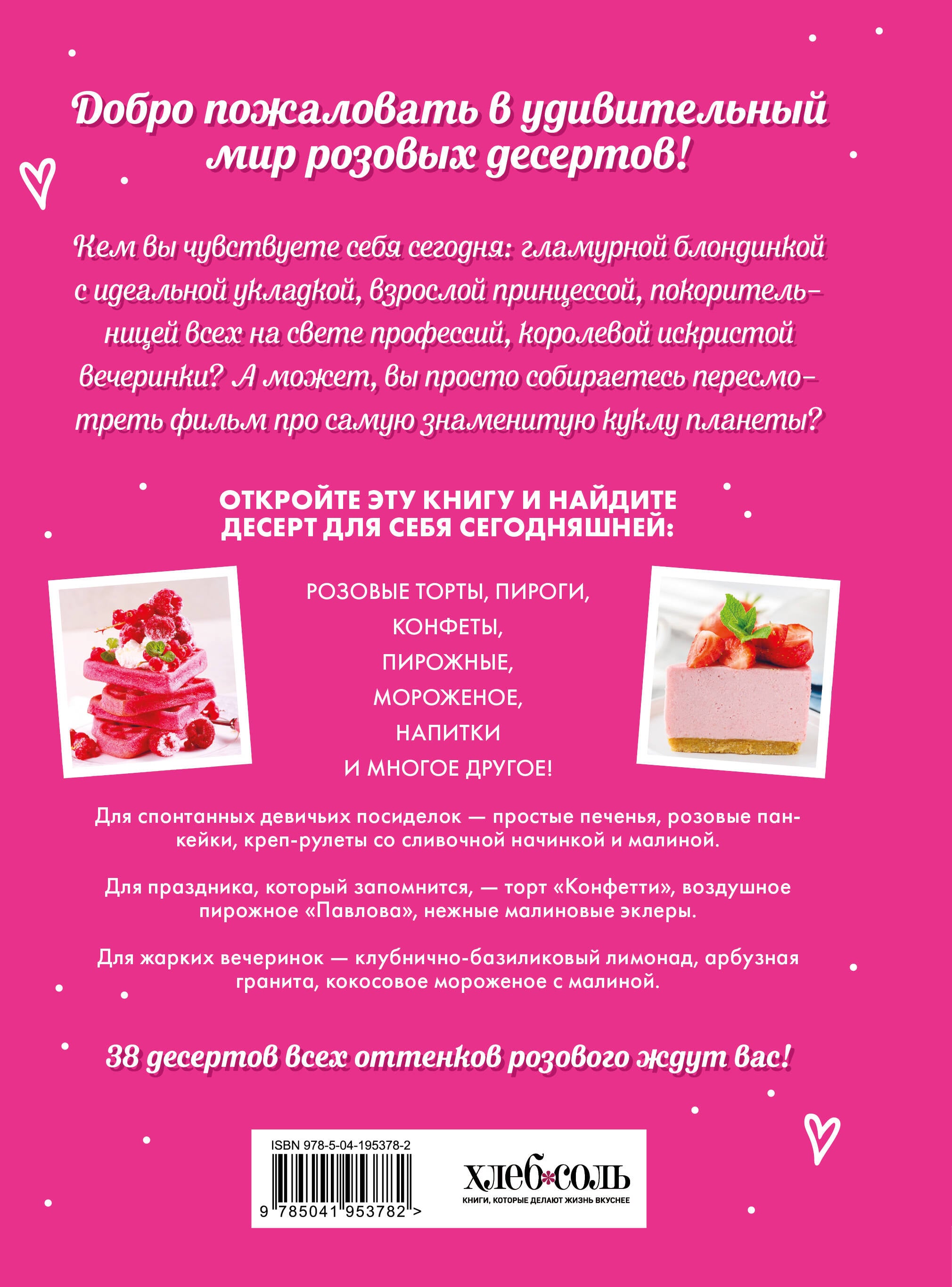 А у вас в детстве была любимая кукла Барби? А еще вы наверняка покупали про нее журналы и писали важные вещи в розовом блокноте. Хотите вновь перенестись в то беззаботное время? А может, собираетесь устроить киновечер и посмотреть фильм с Марго Робби и Райаном Гослингом? Тогда сделайте пару десертов и устраивайтесь поудобнее! Яркая книга, вдохновленная легендарной куклой, перенесет вас в мир сладостей всех оттенков розового. Вас ждут волна теплой ностальгии и 38 рецептов для любого случая: - простые печенья, конфеты и пироги, когда спонтанно хочется праздника; - пирожные, капкейки и торты, которые произведут фурор на любом празднике; - муссы, мороженое и лимонады для жарких летних вечеринок. Готовы отправиться в мир розовых десертов? Let's go party!