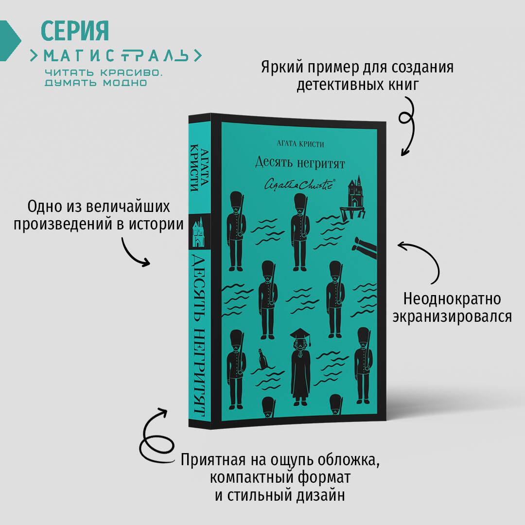 Роман «Десять негритят» - одно из величайших детективных произведений в истории. Выпущенный общим тиражом более 100 000 000 экземпляров, он занимает пятое место в списке бестселлеров художественной литературы всех времен - и безусловное первое место среди романов самой Агаты Кристи. Агата Кристи - самый публикуемый автор всех времен и народов после Шекспира. Тиражи ее книг уступают только тиражам его произведений и Библии. В мире продано больше миллиарда книг Кристи на английском языке и столько же - на других языках. Она автор восьмидесяти детективных романов и сборников рассказов, двадцати пьес, двух книг воспоминаний и шести психологических романов, написанных под псевдонимом Мэри Уэстмакотт. Ее персонажи Эркюль Пуаро и мисс Марпл навсегда стали образцовыми героями остросюжетного жанра. «Десять негритят» Агата Кристи считала своим лучшим произведением. Под таким названием роман вышел в 1939 году, все последующие публикации печатались под более политкорректным названием «...И никого не стало». Роман стал первым произведением с темой «идеального убийства», а также послужил примером для создания множества детективных книг и психологических фильмов, в которых полностью или частично использованы приемы из данного произведения. Неоднократно экранизировался, но только советский двухсерийный телефильм Станислава Говорухина полностью соответствовал сюжетной линии с мрачной концовкой.| Издательство | ООО "Издательство "Эксмо" |