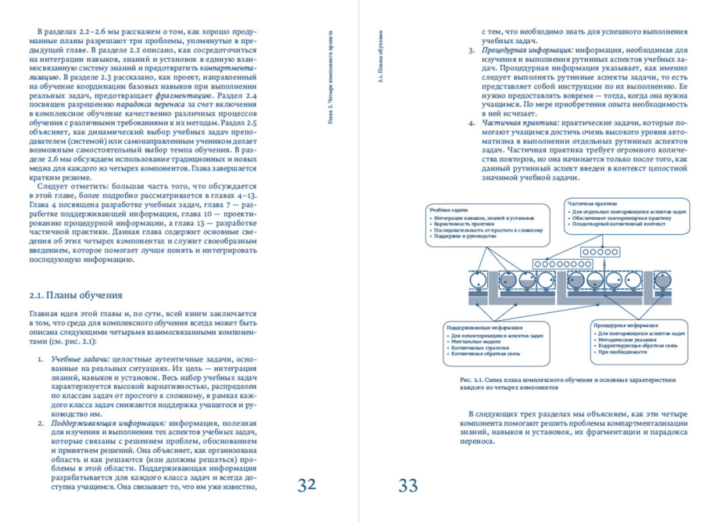 Йерун Мариенбор и Пол Киршнер дают пошаговую инструкцию для методистов и преподавателей, стремящихся выстроить эффективный процесс обучения по модели 4C/ID. От проектирования ядра и структуры программы до определения учебных задач - универсальное руководство для применения модели в рамках образовательных проектов разного масштаба.