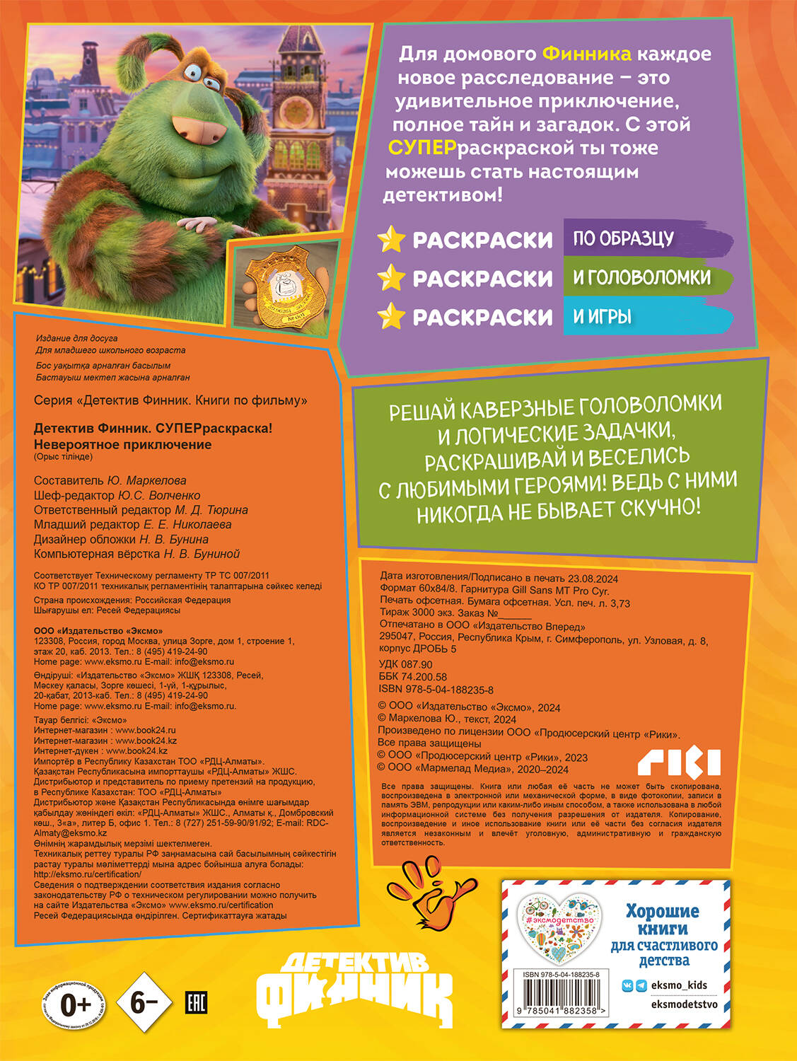 Аннотация: Детектив Финник. СУПЕРраскраска! Невероятное приключение