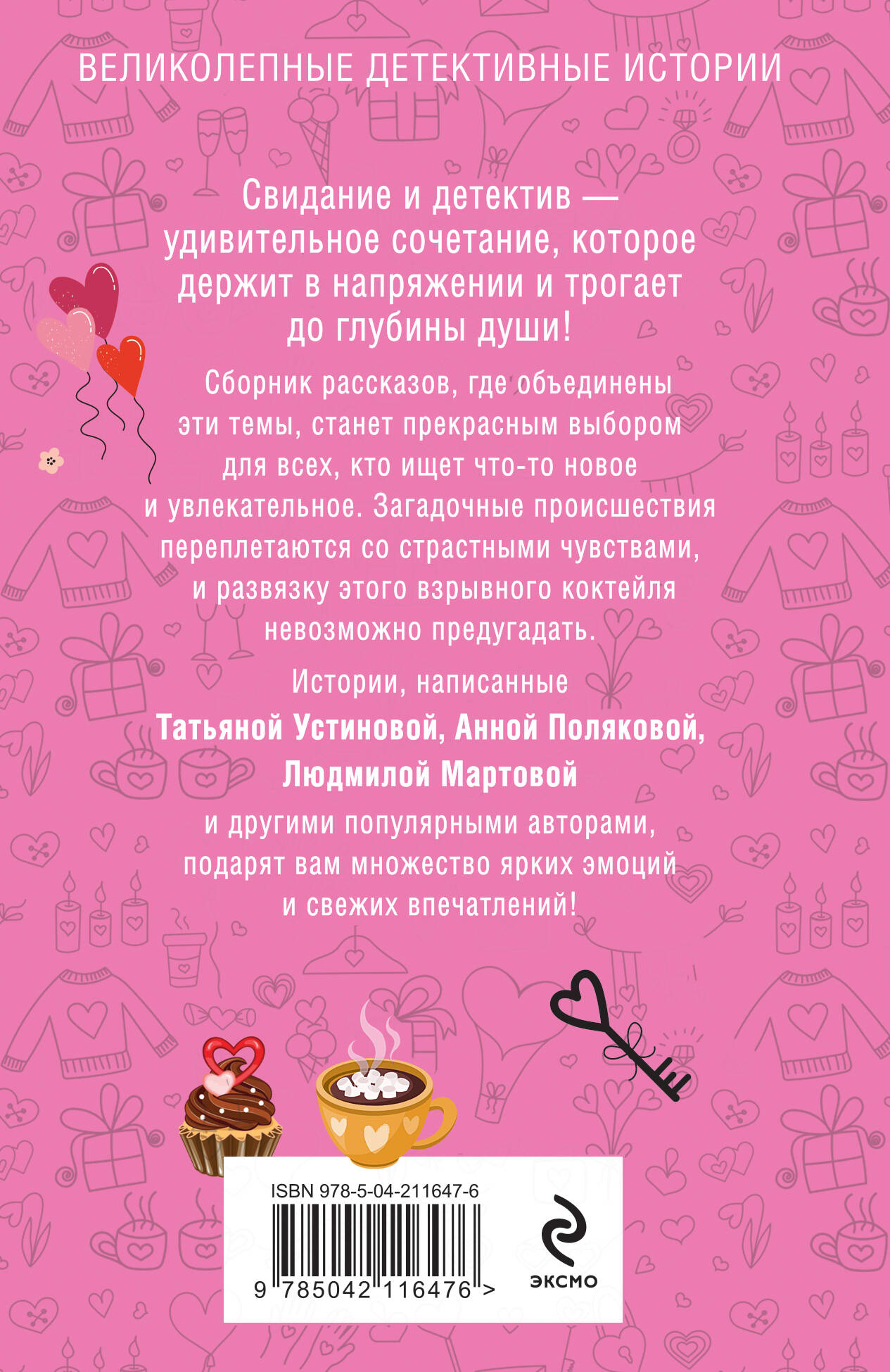 Свидание и детектив - удивительное сочетание, которое держит в напряжении и трогает до глубины души! Сборник рассказов, где объединены эти темы, станет прекрасным выбором для всех, кто ищет что-то новое и увлекательное. Загадочные происшествия переплетаются со страстными чувствами, и развязку этого взрывного коктейля невозможно предугадать. Истории, написанные Татьяной Устиновой, Анной Поляковой, Людмилой Мартовой и другими популярными авторами, подарят вам множество ярких эмоций и свежих впечатлений! Представляем вам уникальное сочетание: страсть свиданий и накал детективных историй. Этот сборник рассказов не просто захватит ваше внимание - он погрузит вас в мир интриг и романтики, где каждое новое событие и поворот сюжета держат в напряжении до последней страницы!| Издательство | ООО "Издательство "Эксмо" |