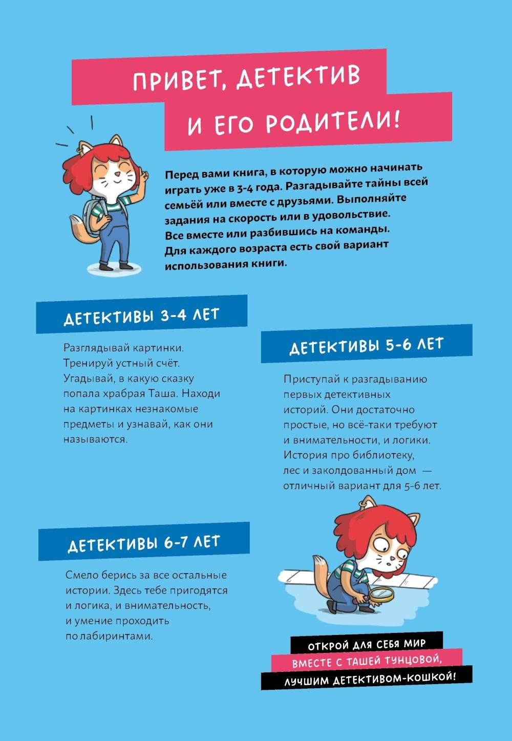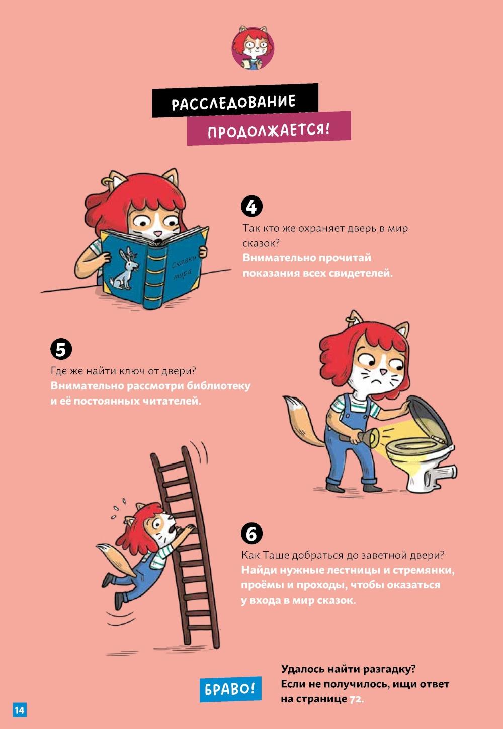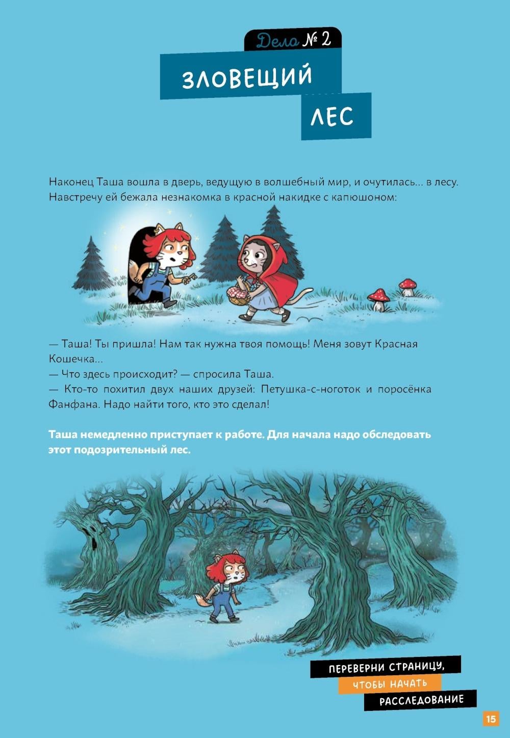 Детектив Таша Тунцова отправляется в страну сказок, чтобы помочь её жителям спасти детей из лап злой колдуньи, найти похищенного джина и расколдовать спящего короля. Помогите Таше открыть проход в мир сказок и распутать все происшествия! Вам предстоит искать улики на картинках, сравнивать показания свидетелей, расшифровывать таинственные послания и находить проход по подземному лабиринту. Али-Баба и сорок разбойников, Спящая красавица, Мальчик-с-пальчик, Красная Шапочка и Аладдин - узнайте героев знакомых сказок в необычном исполнении. Книга удачно сочетает в себе чтение и игру, поиск подсказок и логические размышления.| Издательство | Альпина Паблишер |