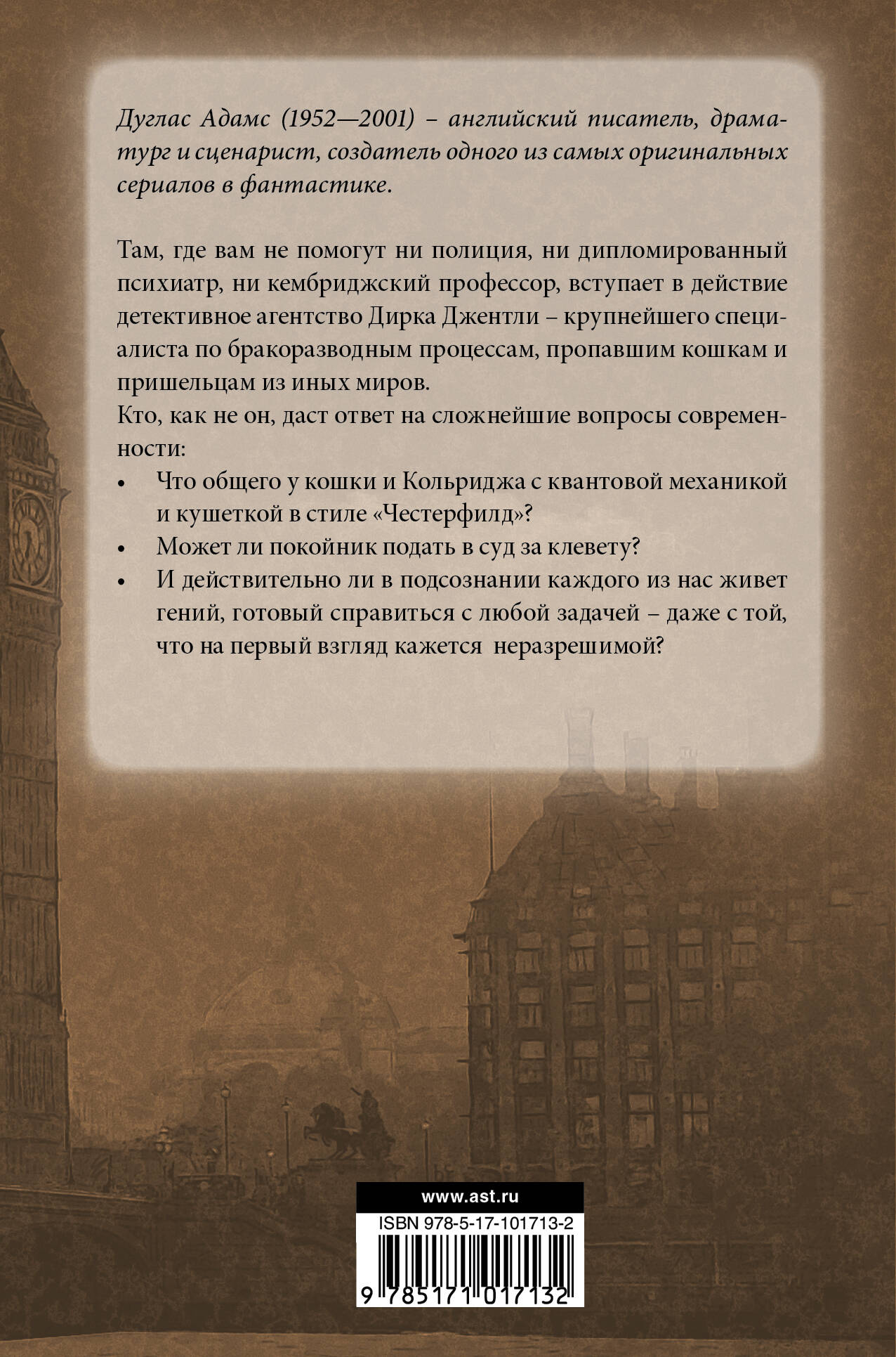 Там, где вам не помогут ни полиция, ни дипломированный психиатр, ни кембриджский профессор, вступает в действие детективное агентство Дирка Джентли - крупнейшего специалиста по бракоразводным процессам, пропавшим кошкам и пришельцам из иных миров. Кто, как не он, даст ответ на сложнейшие вопросы современности: Что общего у кошки и Кольриджа с квантовой механикой и кушеткой в стиле "Честерфилд"? Может ли покойник подать в суд за клевету? И действительно ли в подсознании каждого из нас живет гений, готовый справиться с любой задачей - даже с той, что на первый взгляд кажется неразрешимой?| Издательство | ИЗДАТЕЛЬСТВО "АСТ" |