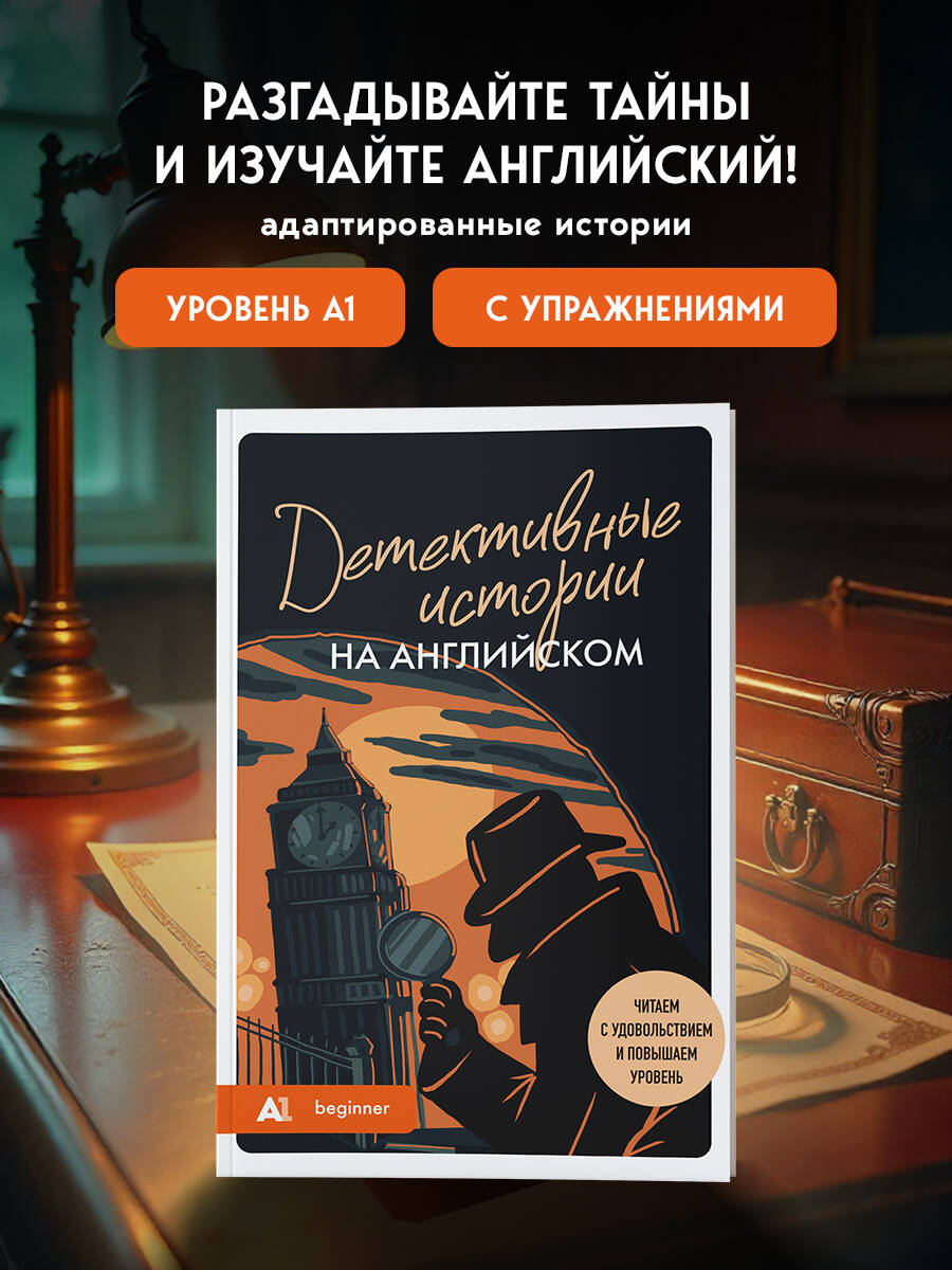 ДЕТЕКТИВЫ НА АНГЛИЙСКОМ ДЛЯ НАЧИНАЮЩИХ ЧИТАТЕЛЕЙ «Детективные истории на английском» - это сборник адаптированных рассказов для уровня A1-A2. В каждом тексте - небольшая загадка с интригой, уликами и неожиданной развязкой. Истории читаются легко, а язык запоминается через сюжет - понятно и естественно. Внутри: - 25 коротких историй с детективным сюжетом; - упражнения после каждого текста; - полезные выражения с переводом; - ответы ко всем заданиям. Книга идеально подойдёт для самостоятельной практики, чтения в дороге или занятий с преподавателем.| Издательство | ООО "Издательство "Эксмо" |