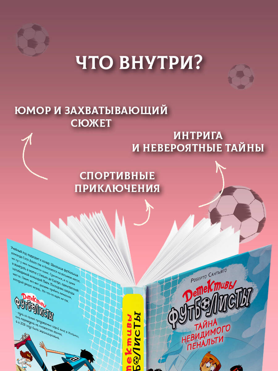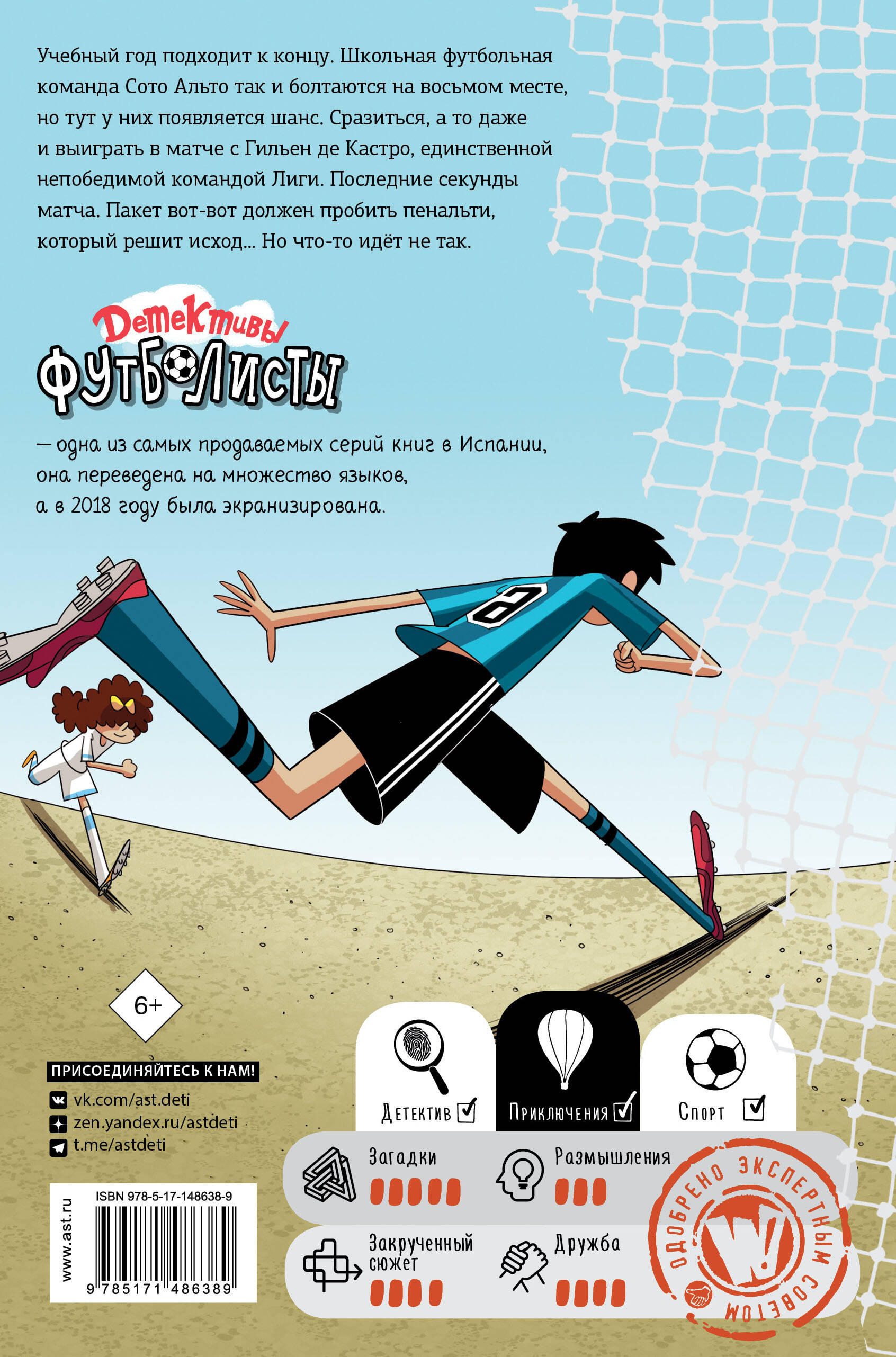 Учебный год подходит к концу. Школьная футбольная команда Сото Альто так и болтаются на восьмом месте, но тут у них появляется шанс. Сразиться, а то даже и выиграть в матче с Гильен де Кастро, единственной непобедимой командой Лиги. Последние секунды матча. Пакет вот-вот должен пробить пенальти, который решит исход... Но что-то идёт не так. Роберто Сантьяго работал сценаристом на телевидении, редактором и продюсером. Серия про детективов-футболистов стала настоящим культурным феноменом, это одни из самых продаваемых книг в Испании, они переведены на разные языки мира, а в 2018 году даже были экранизированы.| Издательство | ИЗДАТЕЛЬСТВО "АСТ" |