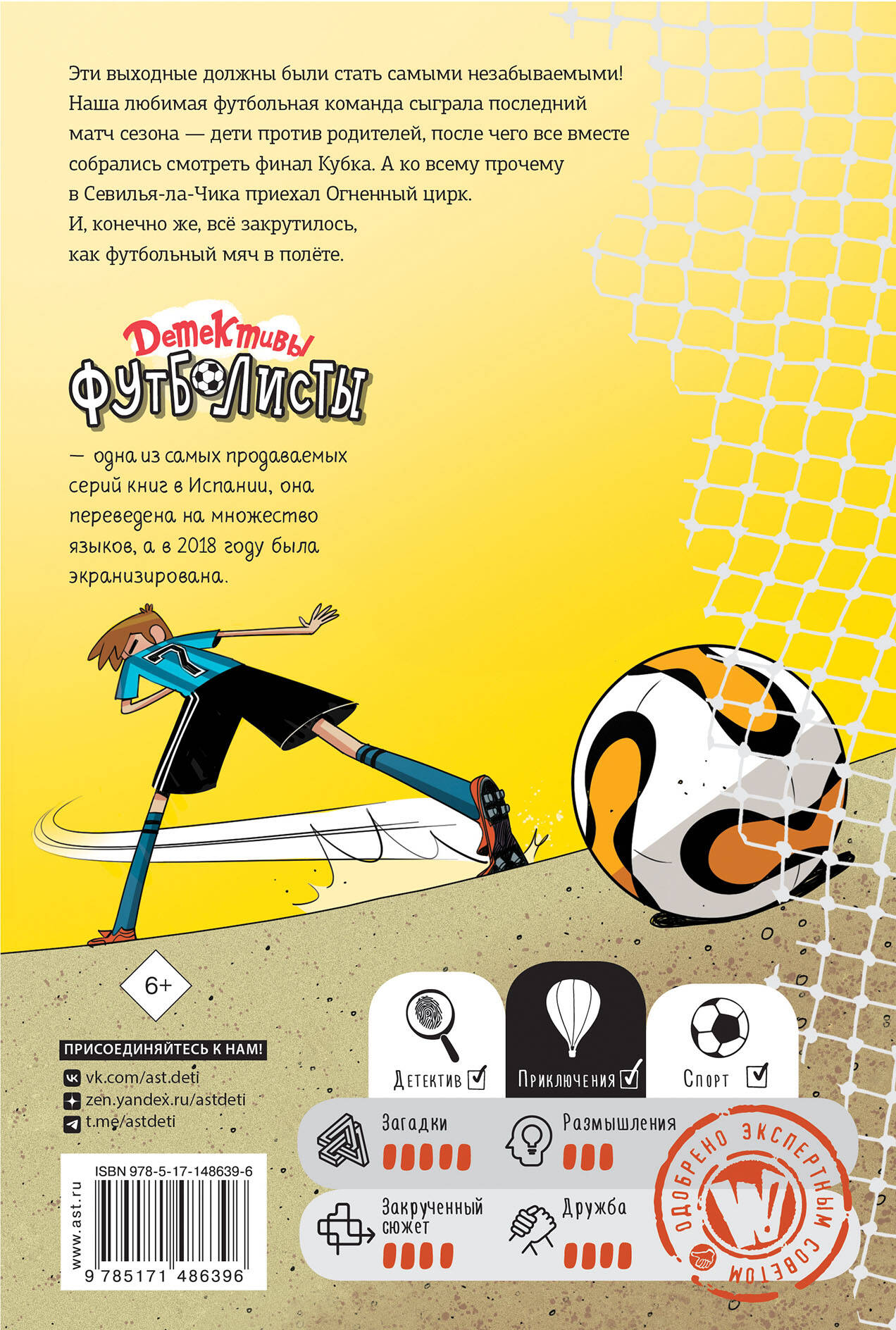 Очередная невероятная история из жизни школьной футбольной команды Сото Альто. На этот раз они играют последний матч сезона - дети против родителей, а после этого отправляются смотреть финал Кубка и попадают на представление Огненного цирка. И, конечно же, именно тут всё закручивается, как футбольный мяч в полёте. Роберто Сантьяго был сценаристом на телевидении, редактором и продюсером, а сейчас - один из самых успешных авторов Испании. Серия про детективов-футболистов стала настоящим культурным феноменом, это одни из самых продаваемых книг в Испании, они переведены на разные языки мира, а в 2018 году даже были экранизированы.| Издательство | ИЗДАТЕЛЬСТВО "АСТ" |