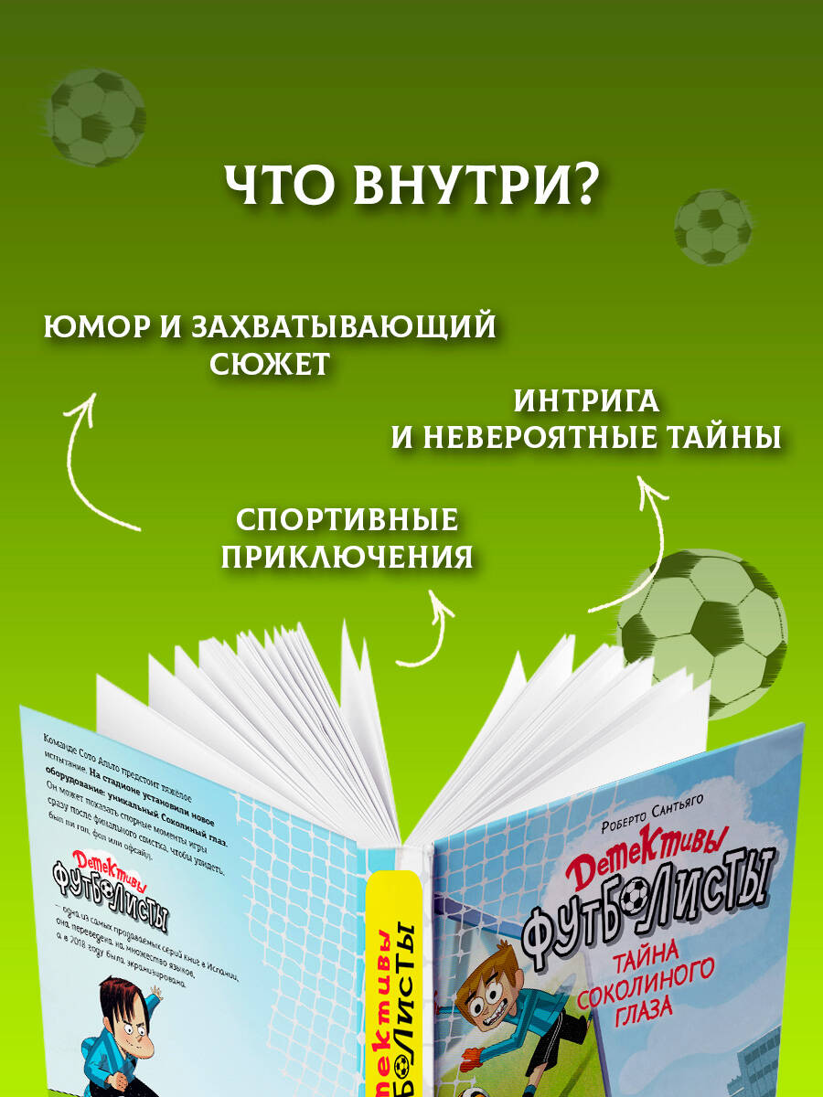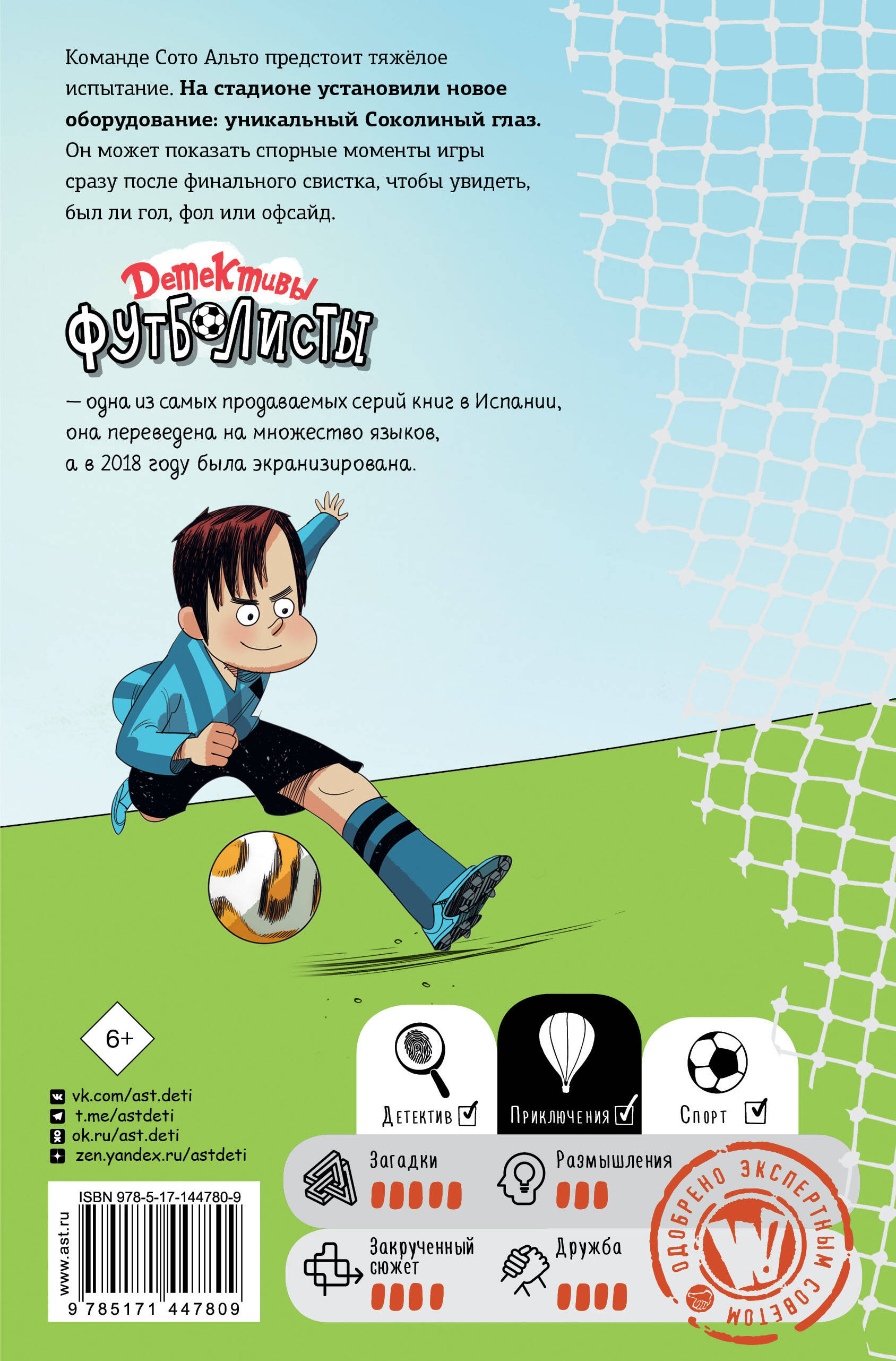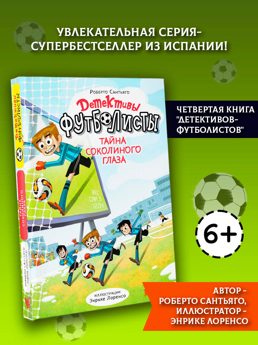 Можете ли вы себе представить, что в реальной жизни есть возможность перемотать время назад и увидеть повтор события в замедленной съёмке? Что ж, это может "Соколиный глаз": он показывает спорные моменты матча в записи, чтобы увидеть, был ли гол, фол или офсайд. Роберто Сантьяго работал сценаристом на телевидении, редактором и продюсером. Серия про детективов-футболистов стала настоящим культурным феноменом, это одни из самых продаваемых книг в Испании, они переведены на разные языки мира, а в 2018 году даже были экранизированы.| Издательство | ИЗДАТЕЛЬСТВО "АСТ" |