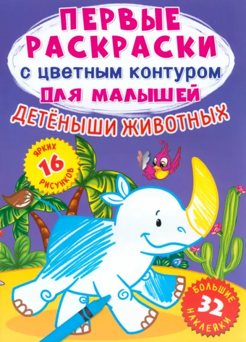 Рисование - увлекательнейшее занятие, вот почему маленькие художники просто обожают раскраски. Мы подготовили для них сюрприз - замечательную книжку, в которой изображения имеют не чёрный, а цветной контур. Это подскажет малышу, какую краску нужно выбрать, чтобы получить яркую и красивую картинку. Раскрашивайте детенышей животных, наклеивайте стикеры и учите новые слова!