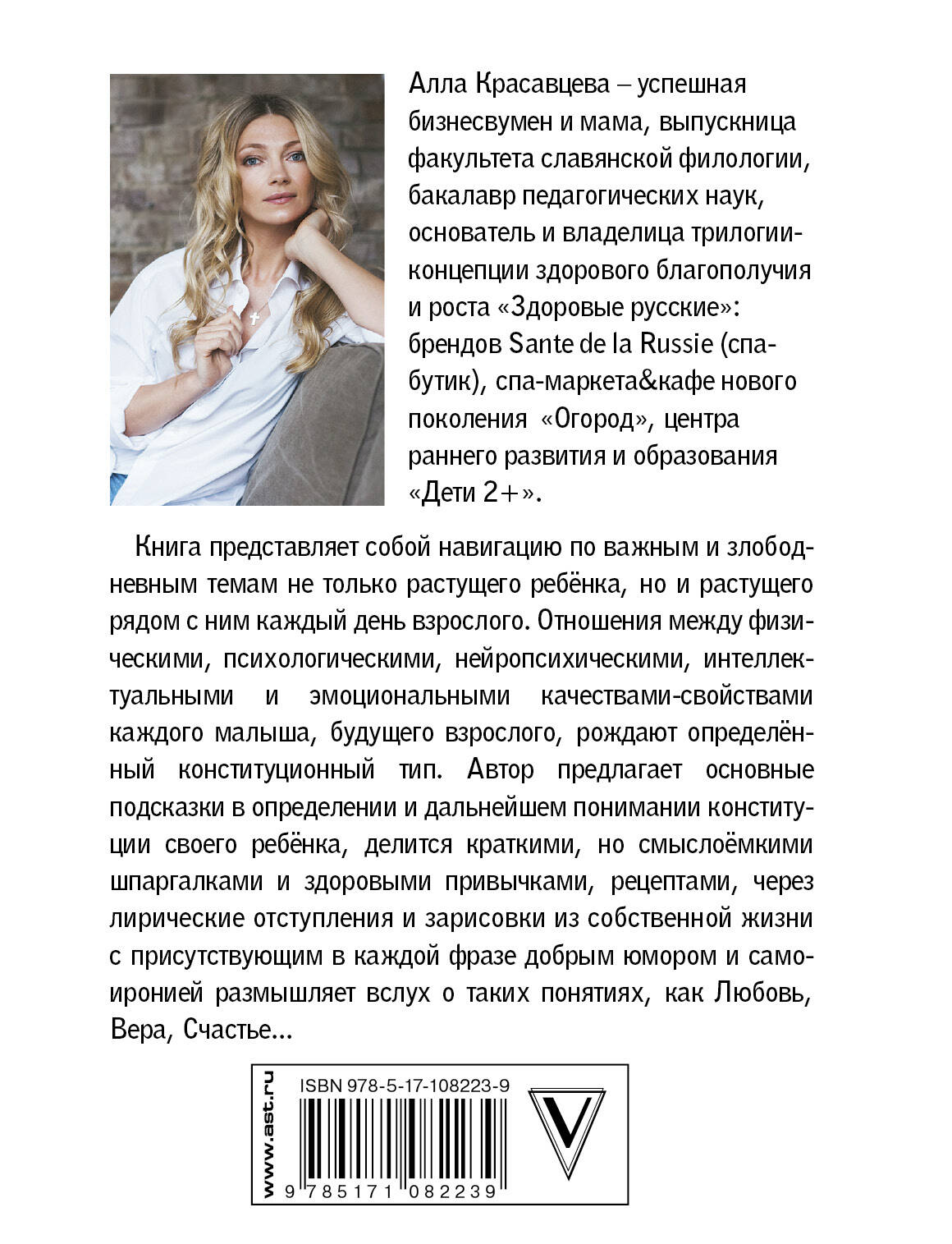 Книга представляет собой навигацию по важным и злободневным темам не только растущего ребёнка, но и растущего рядом с ним каждый день взрослого. Отношение между физическими, психологическими, нейро-психическими, интеллектуальными и эмоциональными качествами-свойствами каждого малыша, будущего взрослого, рождает определённый конституционный тип. Автор предлагает основные подсказки в определении и дальнейшем понимании конституции своего ребёнка, делится краткими, но смыслоёмкими шпаргалками и здоровыми привычками, рецептами, через лирические отступления и зарисовки из собственной жизни с присутствующим в каждой фразе добрым юмором и самоиронией размышляет вслух о таких понятиях, как Любовь, Вера, Счастье... Выводом в конце книги "Счастье есть" автор освещает путь каждой мамы и папы в "командной игре" - родительстве и воспитании себя.| Издательство | ИЗДАТЕЛЬСТВО "АСТ" |