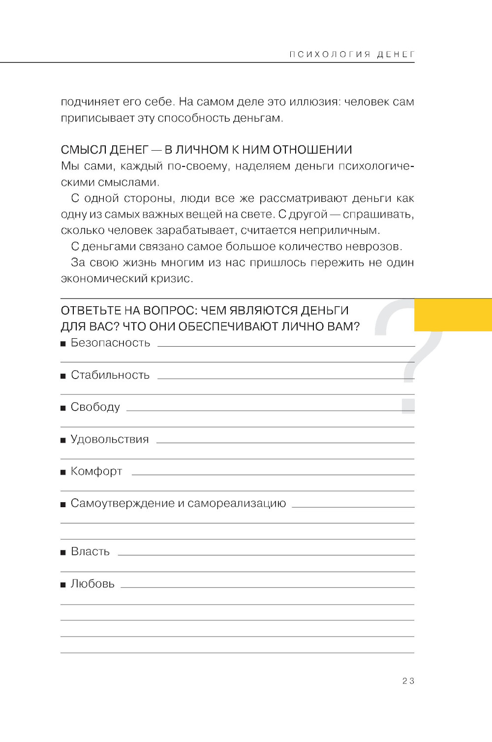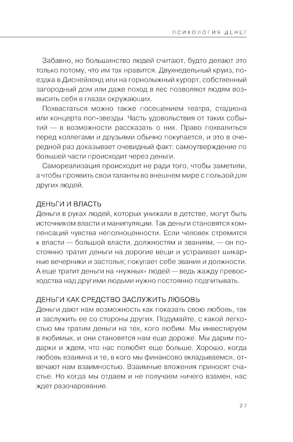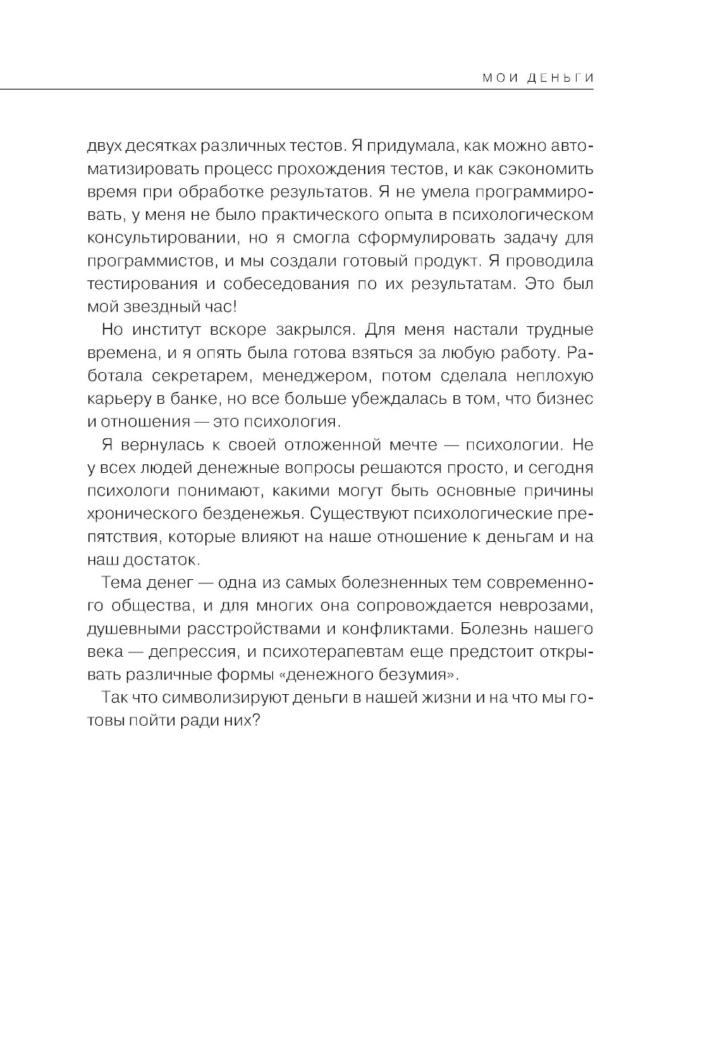 Эта книга - о нашем нежелании взрослеть, неумении принимать на себя ответственность и о способах, которые помогут выстроить с личными финансами здоровые отношения. Нередко наши внутренние конфликты и убеждения, сформированные еще в детстве, продолжают влиять на решения, которые мы принимаем в зрелом возрасте: как зарабатывать и накапливать деньги, во что инвестировать, как выстраивать семейный бюджет, давать ли деньги детям на карманные расходы и многие другие. Можно учиться финансовой грамотности, формировать привычку копить, пытаться избегать импульсивных покупок, но все это не будет работать, пока мы не разберемся со своими психологическими проблемами. Психолог Ирина Марьевич рассказывает, как с помощью эмоционально-образной терапии избавиться от внутренних препятствий на пути к материальному благополучию. Техники и упражнения из книги помогут бережно «распаковать» глубоко спрятанные травмирующие ситуации и лучше понять самих себя. Автор объясняет, как детское умение фантазировать и рисковать помогают зарабатывать; почему позиция «хочу все и немедленно» никогда не работает; как избавиться от негативных установок о деньгах в духе «не жили богато, нечего и начинать»; как осознать, что за стремлением к богатству стоит потребность в заботе и любви.