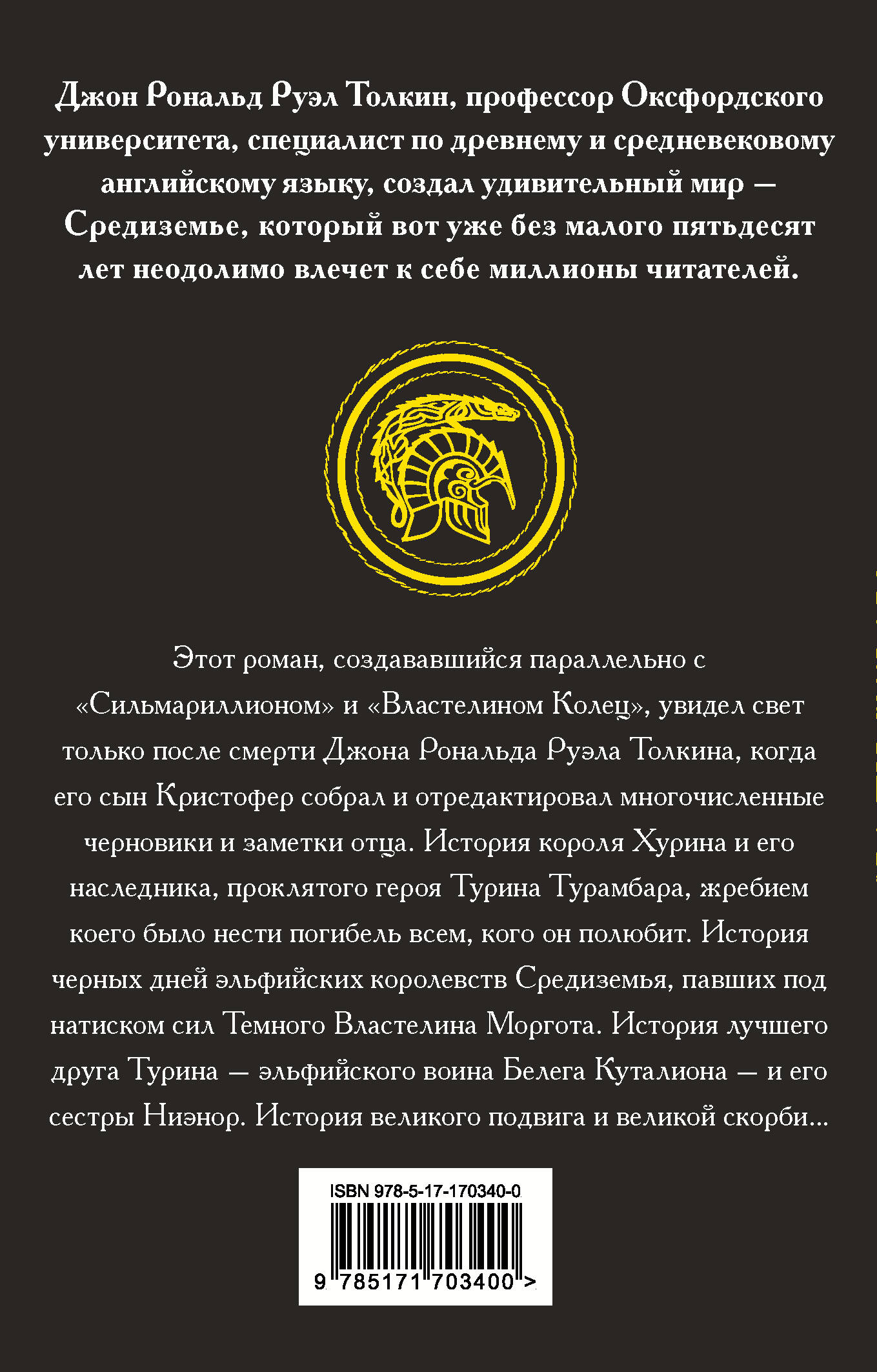 - От автора знаменитых романов «Хоббит» и «Властелин колец». - «Дети Хурина», «Берен и Лутиэн» и «Падение Гондолина» вместе образуют три «Великих Сказания Средиземья». - Роман «Дети Хурина» - драматическая история о любви, подвиге и великой скорби. - Толкин работал над «Детьми Хурина» параллельно с «Хоббитом» и «Властелином колец», однако роман так и не был закончен. И лишь спустя тридцать пять лет после смерти Профессора сын писателя Кристофер подготовил роман к печати: собрал из разрозненных фрагментов, отредактировал и откомментировал.| Издательство | Издательство "АСТ" |