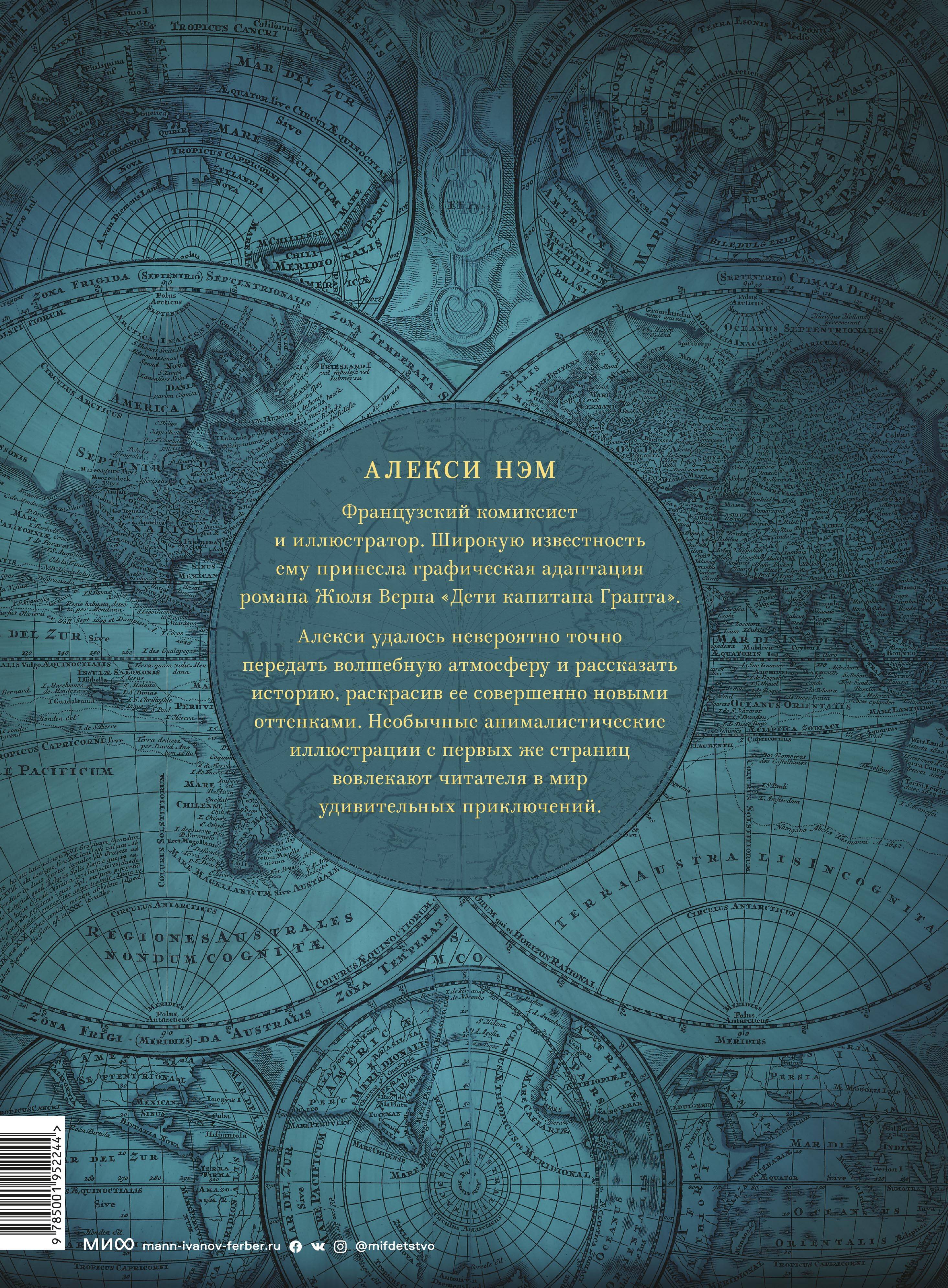 Во время морской экспедиции экипаж судна "Дункан", которое принадлежало лорду и леди Гленарван, выловил огромную рыбу-молот. В брюхе убитого животного они нашли бутылку с запиской. В ней на трех языках сообщалось о том, что капитан Грант и несколько членов его экипажа выжили после кораблекрушения, сумев доплыть до маленького острова. Они просят спасти их и указали координаты, но часть из них размыло водой. Гленарваны решают спасти отважного капитана и отправляются в опаснейшее путешествие вдоль 37-й параллели. Фишки книги: Одно из самых известных произведений Жюля Верна, займет достойное место на книжной полке любого читателя. Комикс с потрясающими, яркими иллюстрациями Алекси Нэма. Трилогия в одном издании - прекрасный подарок для ребенка и взрослого. Увлекательные и в то же время познавательные приключения героев романа. Для кого эта книга: Для взрослых и детей старше 8 лет. Для всех, кто любит комиксы. Для путешественников и любителей приключений.| Издательство | Манн, Иванов и Фербер |