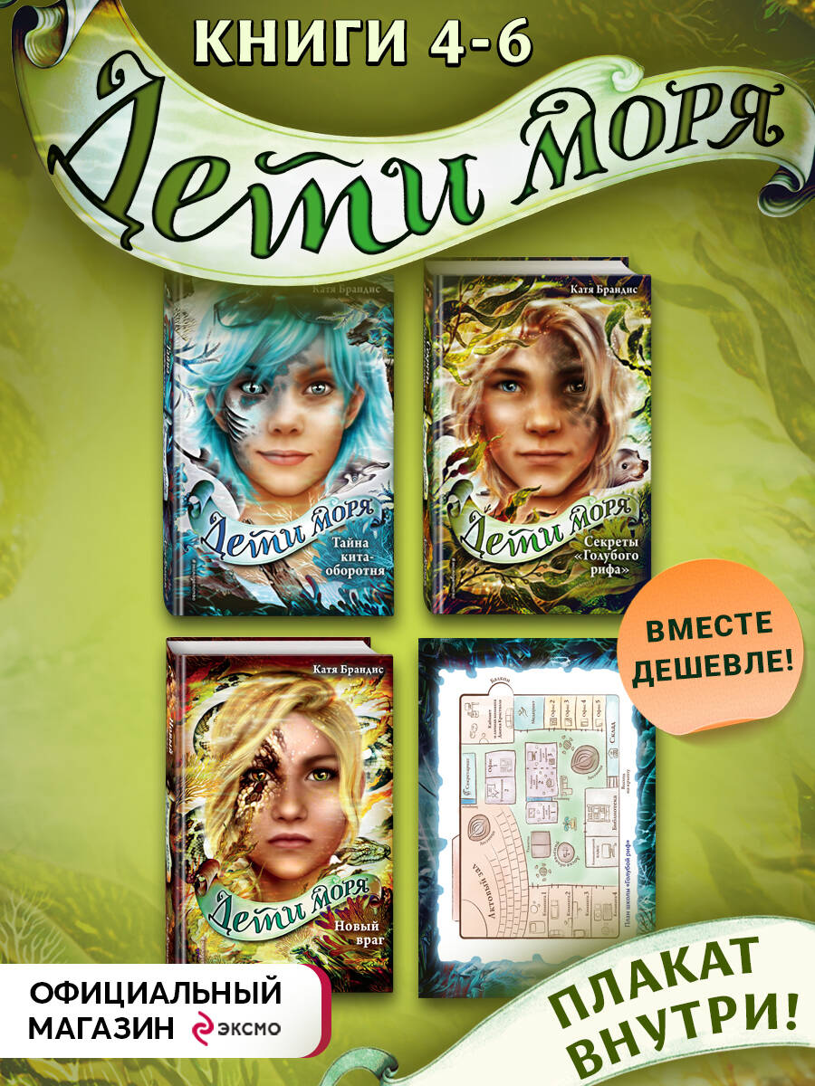 Всем, кто полюбил суперпопулярную серию «Дети леса»! Комплект из трёх книг серии-продолжения «Дети моря»! Внутри уникальные плакаты с анкетами героев и картами школы «Голубой риф». Прекрасный подарок для поклонников историй Кати Брандис! Тьяго всегда считал, что он ничем не выделяется. Но однажды открыл удивительную тайну: он вовсе не тот, кем кажется. Тьяго - человек лишь наполовину. И теперь он должен отправиться в школу «Голубой риф» - место, где учатся необычные подростки. У каждого из них есть большой секрет… Получится ли у Тьяго стать своим среди странных учеников? И какие опасности поджидают его в новой жизни? В комплект входят четвёртая, пятая и шестая книги: «Тайна кита-оборотня», «Секреты "Голубого рифа"», «Новый враг».| Издательство | ООО "Издательство "Эксмо" |