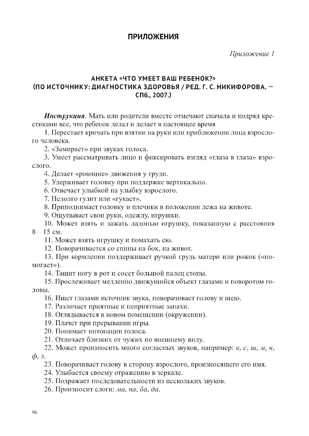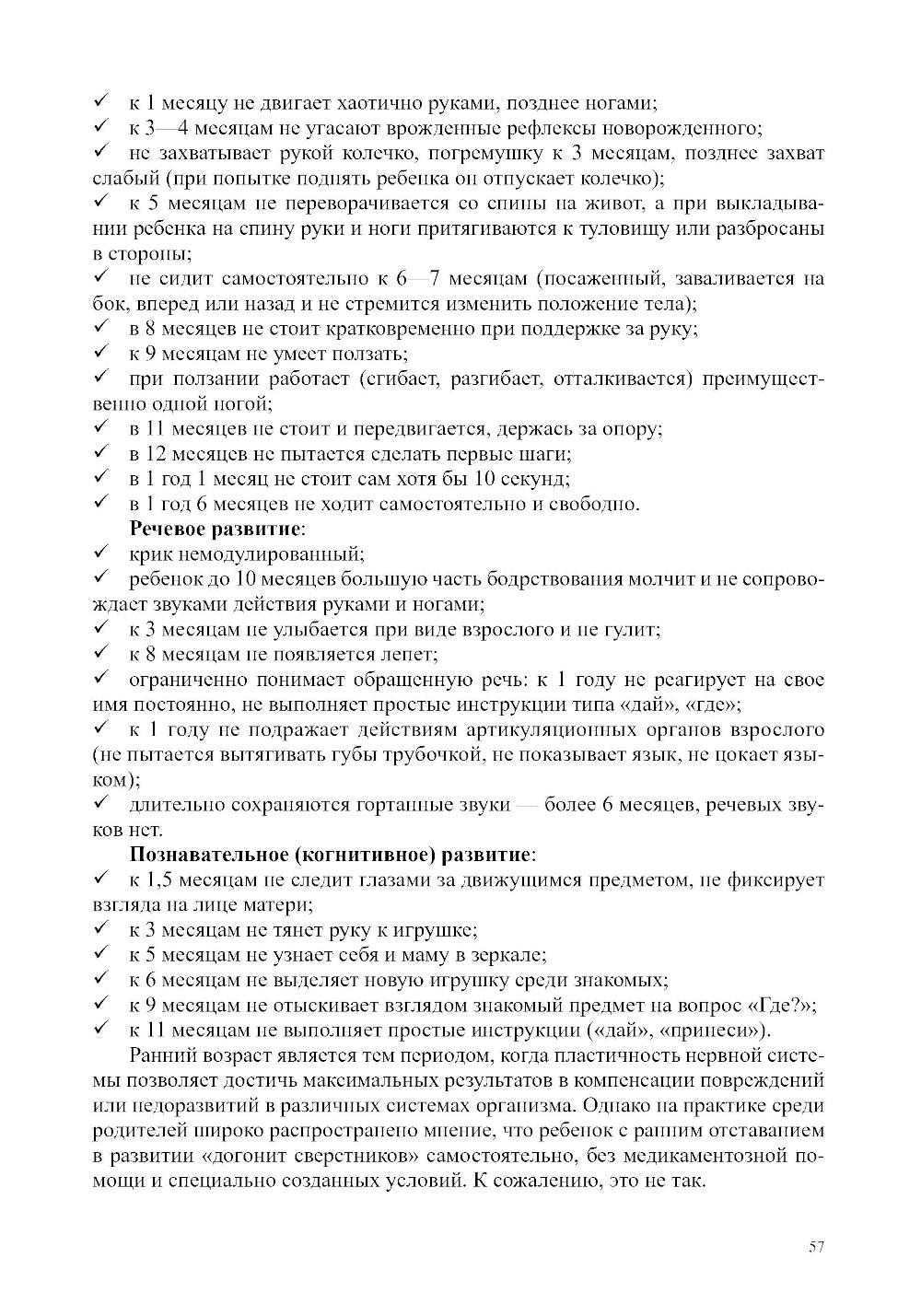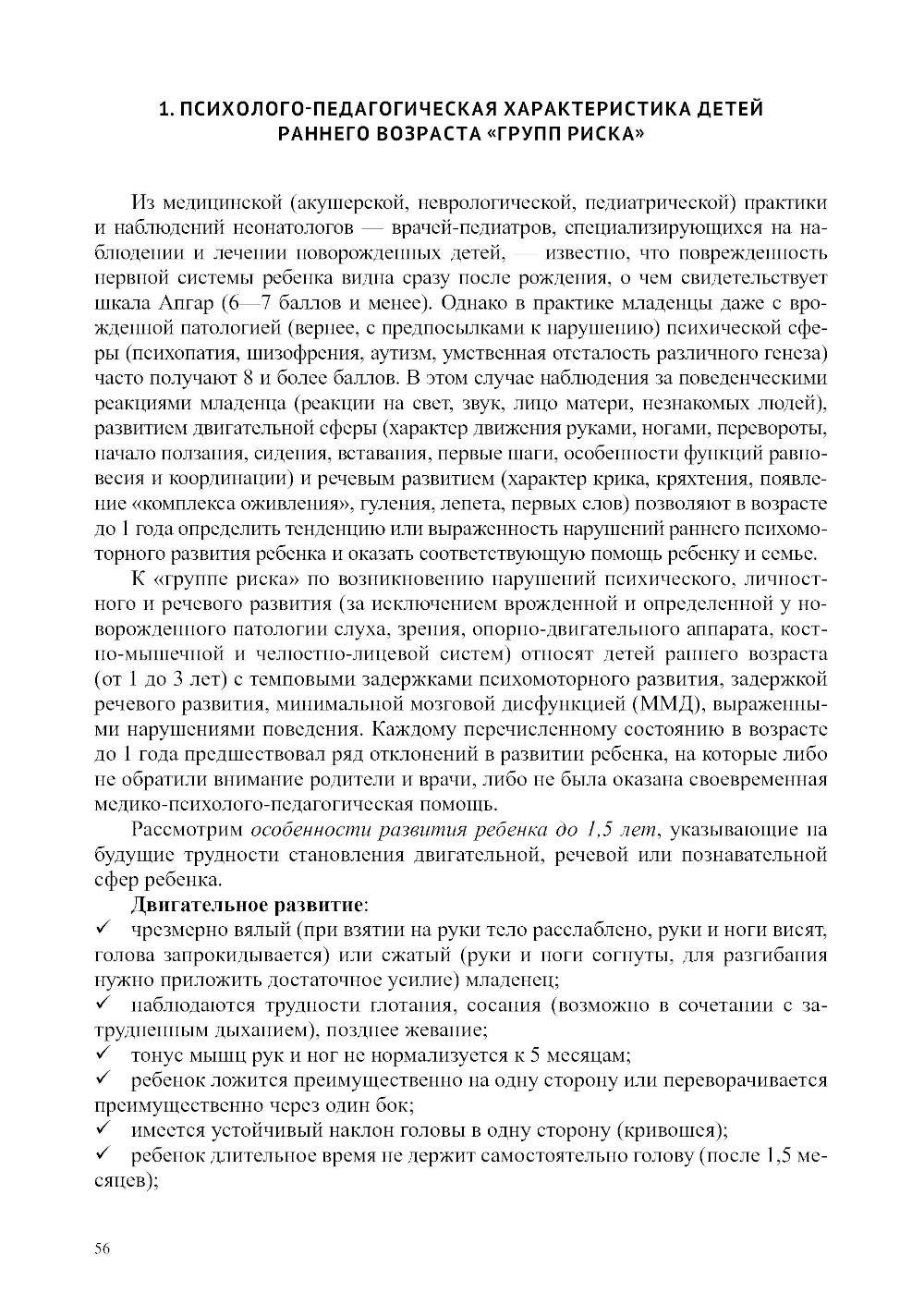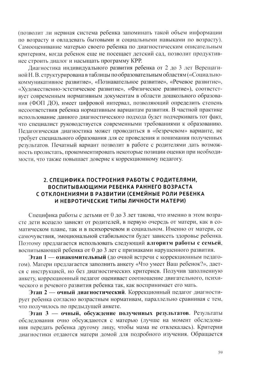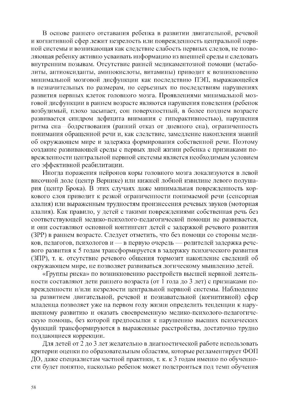 Пособие содержит описание авторского подхода к проведению диагностики отклонений в развитии на двигательном, психоречевом и социальном уровнях у детей раннего возраста по подпериодам: от 0 до 1 года, от 1 года до 2 лет, от 2 до 3 лет. Представлен авторский алгоритм построения программы коррекционно-развивающей работы с учетом выявленных дефицитов и «зоны ближайшего развития». Дана формула расчета сроков реализации программы, и описан алгоритм определения ее эффективности. Проанализированы последствия незрелости и/или поврежденности ЦНС у младенца для его психоречевого, двигательного и социального здоровья. Приведены диагностические матери алы, позволяющие быстро и точно определить особенности развития ребенка от 0 до 3 лет, а также эффективно включить родителей в коррекционно-развивающий процесс. Пособие содержит переработанный из литературных источников и авторский, практически апробированный материал для организации ранней комплексной помощи детям в междисциплинарном подходе. Представленная в пособии информация предназначена коррекционным педагогам, родителям, воспитывающим ребенка от 0 до 3 лет с признаками нарушенного развития, а также студентам, обучающимся по профилю «Специальное дефектологическое образование» и «Психолого-педагогическое образование».