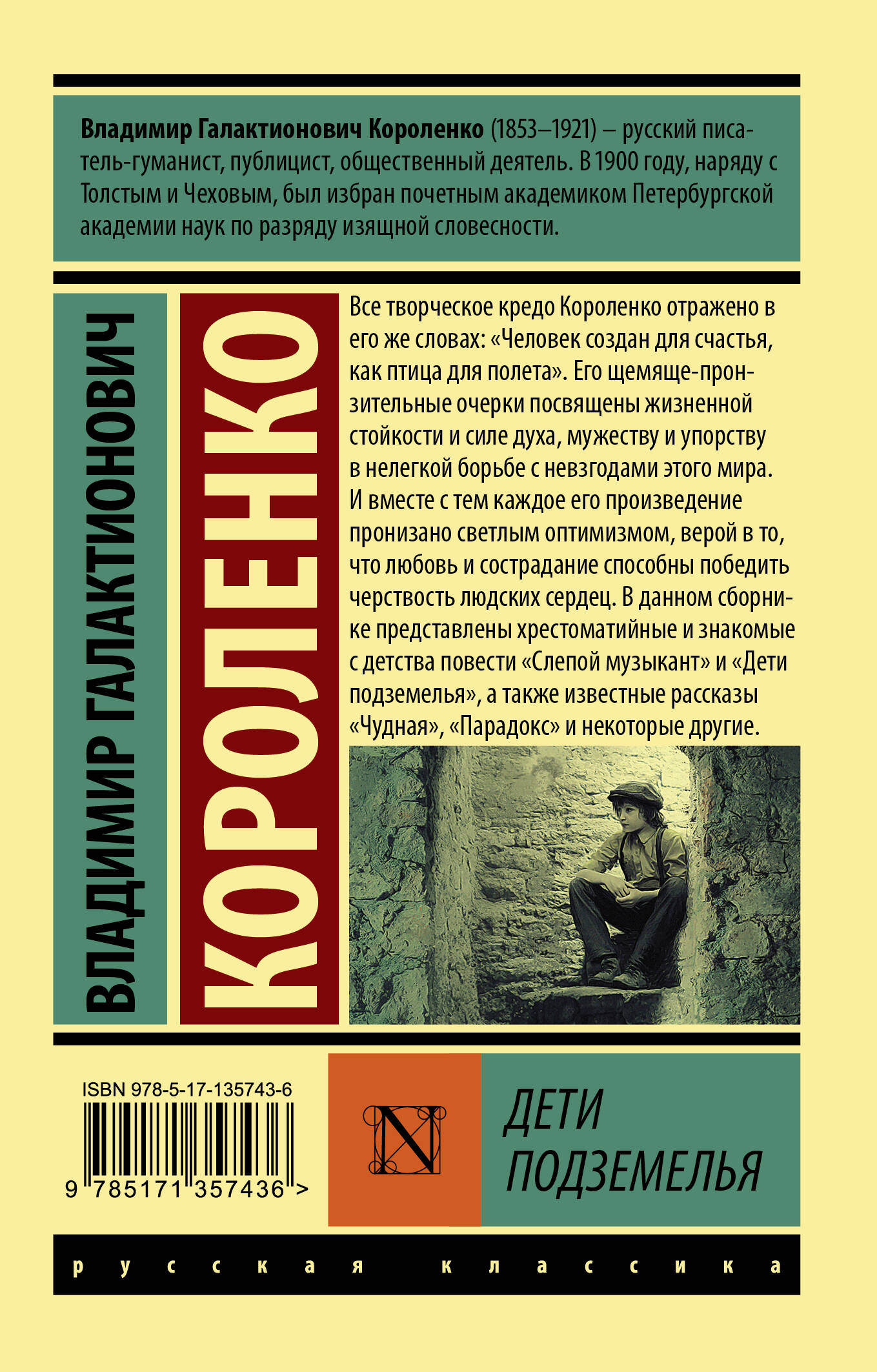 Все творческое кредо Короленко отражено в его же словах: "Человек создан для счастья, как птица для полета". Его щемяще-пронзительные очерки посвящены жизненной стойкости и силе духа, мужеству и упорству в нелегкой борьбе с невзгодами этого мира. И вместе с тем каждое его произведение пронизано светлым оптимизмом, верой в то, что любовь и сострадание способны победить черствость людских сердец. В данном сборнике представлены хрестоматийные и знакомые с детства повести "Слепой музыкант" и "Дети подземелья", а также известные рассказы "Чудная", "Парадокс" и некоторые другие.| Издательство | ИЗДАТЕЛЬСТВО "АСТ" |