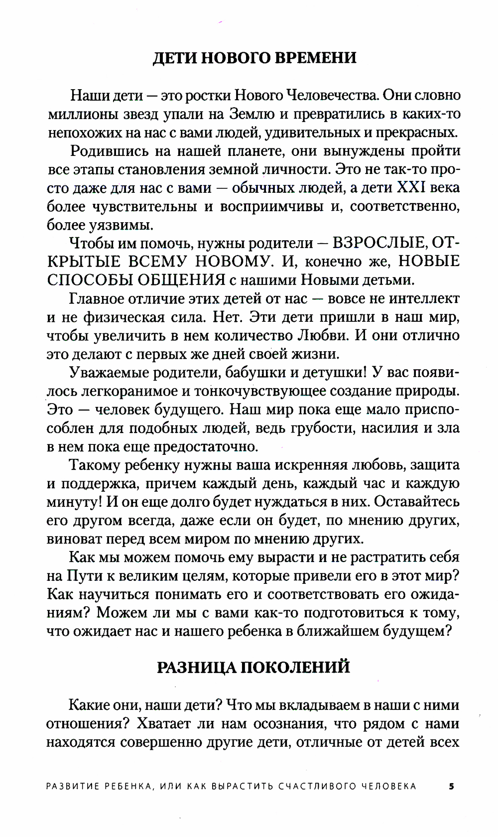 Данная брошюра посвящена особенностям воспитания детей в современную эпоху. В первой части объясняется разница между детьми предыдущих поколений и детьми Нового Времени. Различия здесь огромные: физиологические, психологические и духовные. Не зная об этом, ребенку можно сильно навредить, даже действуя из наилучших побуждений.Во второй части говорится о правильном развитии ребенка и о том, что нужно делать нам, взрослым, чтоб он вырос успешным и счастливым человеком.Брошюра может быть полезной всем тем, кто воспитывает детей и желает им всего самого наилучшего - любви, счастья и добра.
