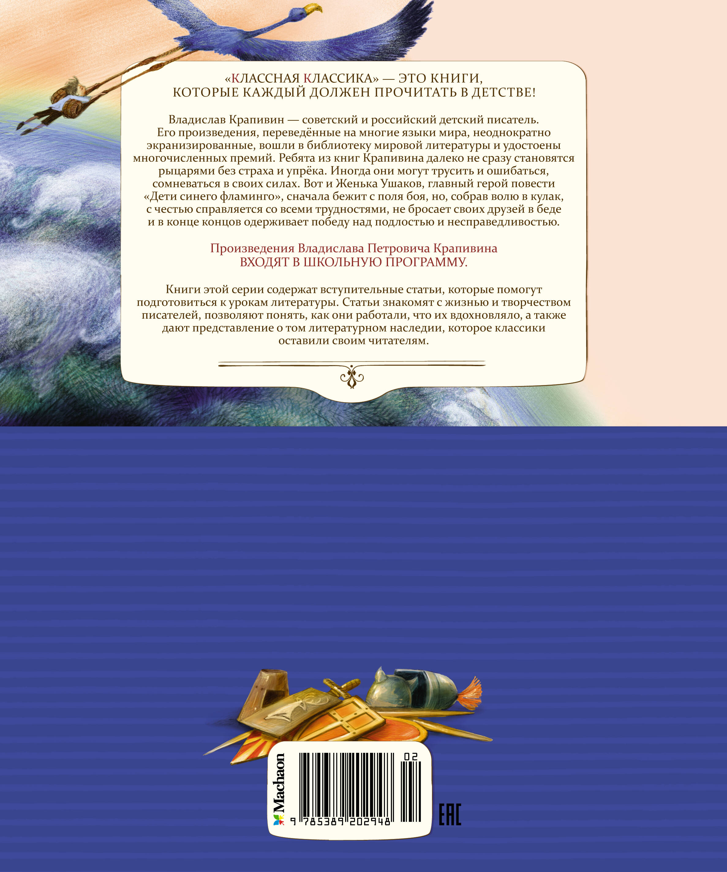 Владислав Петрович Крапивин (1938-2020) - советский и российский детский писатель, поэт, журналист и педагог, автор замечательных произведений, вошедших в библиотеку мировой литературы и переведённых на многие языки мира. "Дети синего фламинго" - увлекательная, невероятно пронзительная повесть-сказка о дружбе и верности, о силе духа и стойкости, о малодушии и благородстве. Главный герой повести Женька Ушаков оказывается в далёкой, неведомой стране. Здесь его ждут захватывающие, полные опасностей приключения. Сумеет ли этот мальчишка справиться с трудностями, удастся ли ему выстоять и одержать победу в неравной борьбе? А главное, каков будет его выбор между честью и бесчестием?..| Издательство | Азбука-Аттикус Издат.группа ООО |