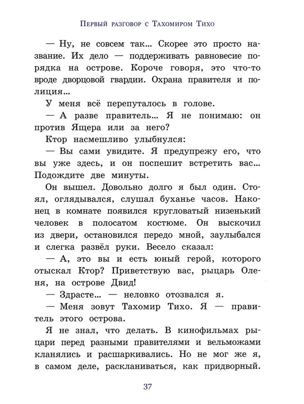 Сказочная повесть Владислава Крапивина о смелости, дружбе и предательстве, подлости и благородстве. Главный герой этой книги, обыкновенный мальчишка Женька Ушаков, попадает на сказочный остров Двид, порабощённый страшным Ящером, которого ему, юному рыцарю, предстоит победить. Но всё оказывается куда сложнее, чем в обычной сказке: и рыцарь, и Ящер, и обитатели острова - вовсе не такие, как кажутся сначала, и рыцарю-Женьке придётся пережить немало опасных приключений, прежде чем будет одержана настоящая победа. Книга выходит с замечательными цветными иллюстрациями Евгения Медведева. Для детей 9-12 лет.| Издательство | Изд. Лабиринт Пресс |