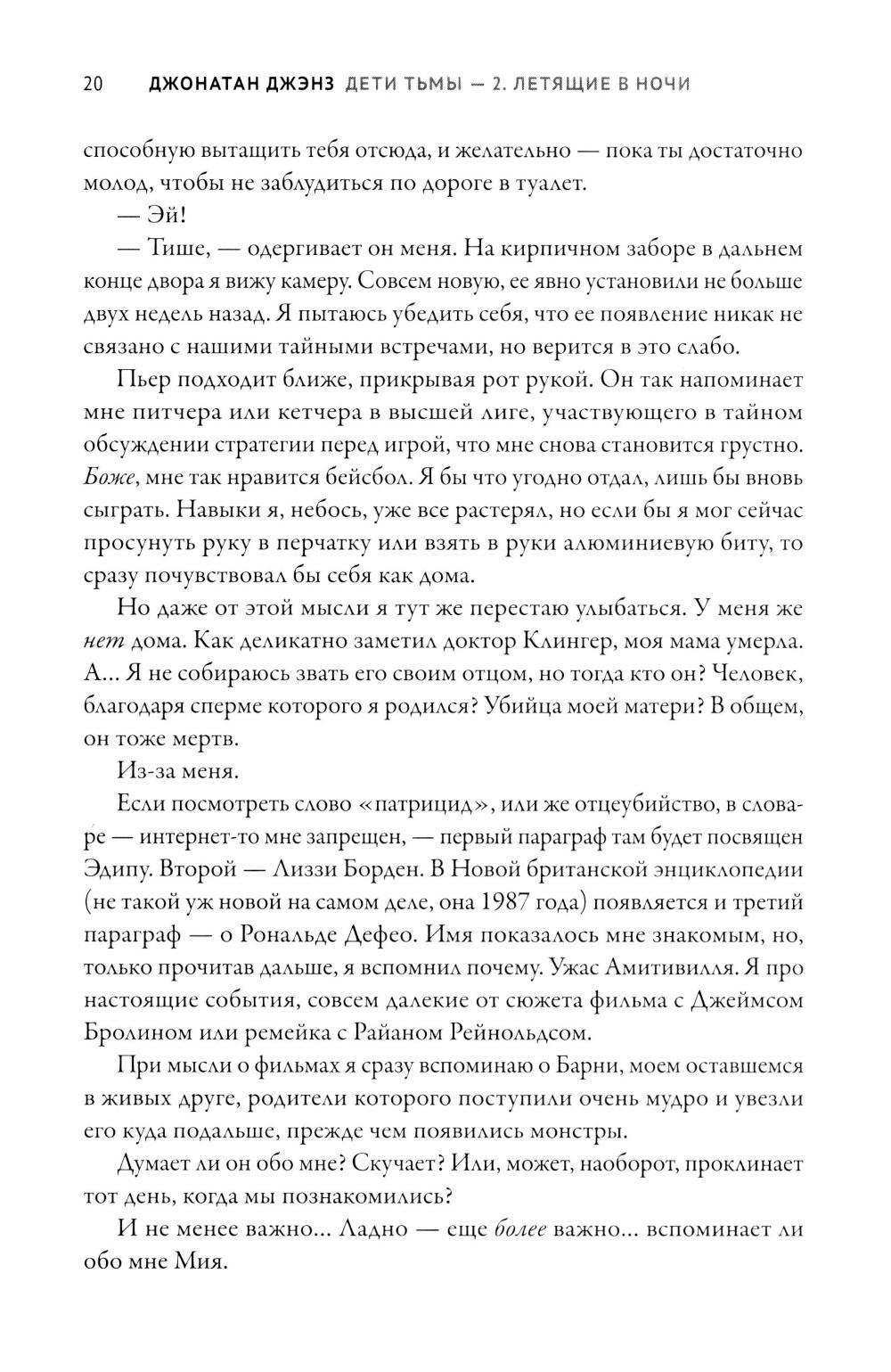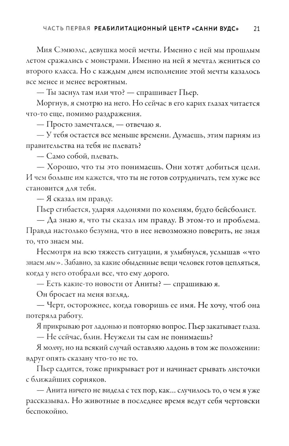 Ты правда думал, что самые жуткие твари обитают в пещерах и лесах Дикой Лощины? Ты успокаивал себя мыслью, что все самое страшное позади и бояться уже нечего? Тогда тебе просто стоить поднять глаза в небо... Шестнадцатилетний Уилл Берджесс никогда еще не был так одинок. Ведь прошлое лето, наполненное кровью, болью и ужасом, унесло жизни почти всех, кого он по-настоящему любил в этом мире, а с оставшимися в живых близкими его безжалостно разлучили. Теперь он пациент реабилитационного центра для трудных подростков, и противостоят ему не монстры, а группа хулиганов и правительственный доктор-садист. Когда проходит слух, что в окрестностях города видели загадочных крылатых существ с горящими красными глазами, Уилл мгновенно понимает, что зло вернулось. Ведь он тоже видел ночных летунов. И, как и прежде, беда снова не пришла одна. Ведь чудовищные Дети все еще скрываются во мраке подземелий, они уж точно не забыли Уилла и обязательно вернутся за его жизнью и жизнями все тех, кто ему дорог. Юноша и его друзья, новые и старые, вновь должны объединиться, чтобы сразиться с силами тьмы - как человеческими, так и сверхъестественными. Ведь зло неумолимо и вечно голодно. И оно не успокоится, пока не утолит свой голод.| Издательство | Феникс |