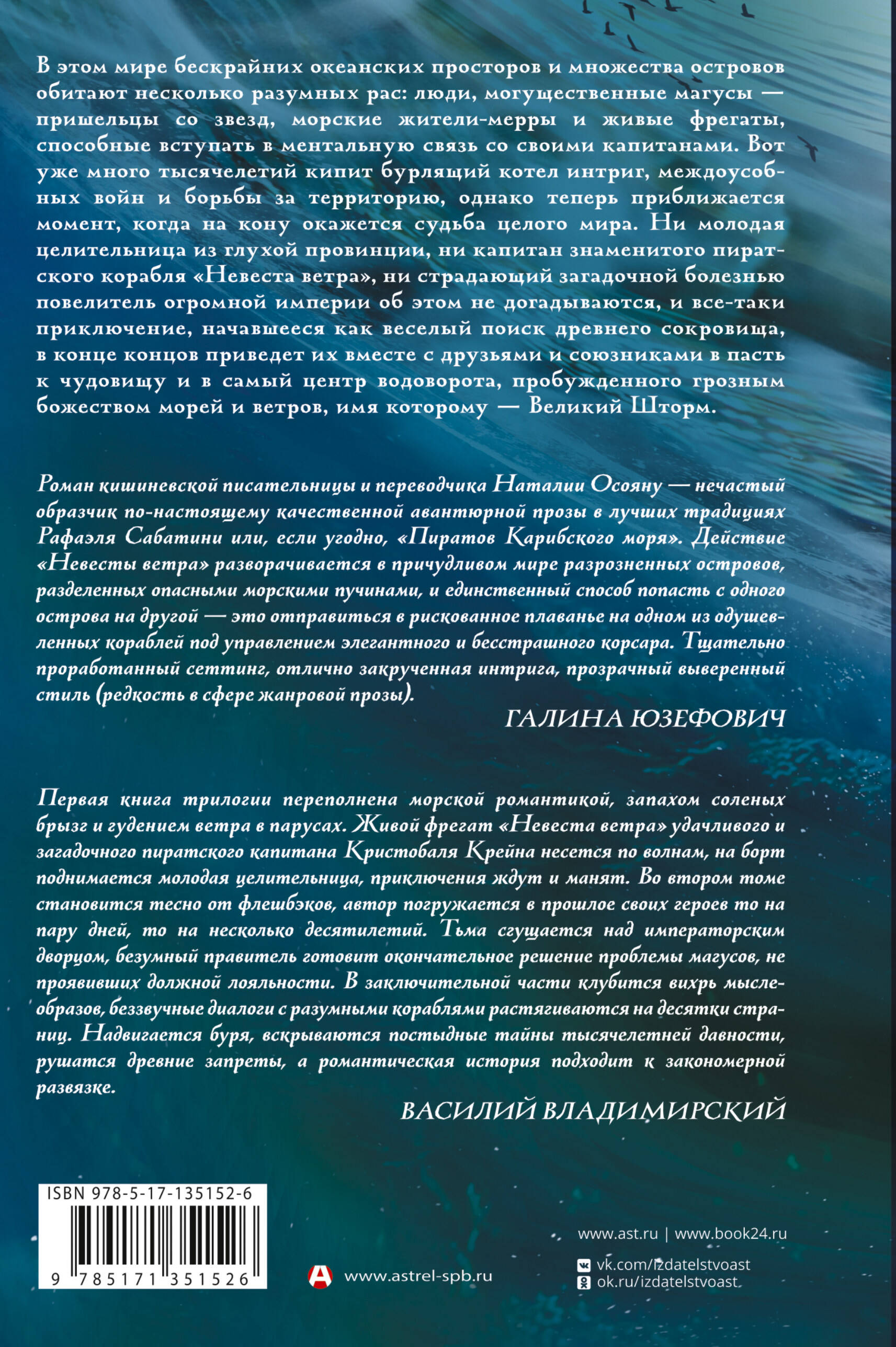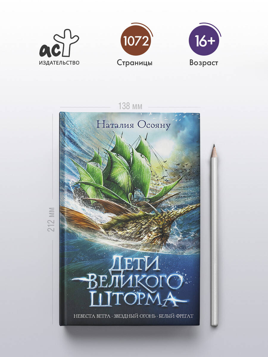 - Трилогия «Дети Великого Шторма» - самобытное, оригинальное и увлекательное фэнтези в лучших традициях приключенческой фантастики. - Понравится поклонникам романа «Гавань Ветров» Джорджа Р. Р. Мартина, циклов «Левиафан» Скотта Вестерфельда, «Сага о живых кораблях» Робина Хобба и «Всадники Перна» Энн Маккефри. - Все три романа трилогии «Дети Великого Шторма» в одной книге: «Невеста ветра», «Звездный огонь» и «Белый фрегат». Тысячелетиями на океанских просторах бушуют войны за острова, а жажда власти отравляет сердца. И вот, когда кажется, что тьма поглотила все вокруг, судьба мира вверяется трем душам, не подозревающим о своей роли. Молодая целительница, чей дар исцеления способен укротить любую болезнь. Капитан пиратского корабля, чей отважный дух не сломлен ни бурями, ни врагами. И император, чей трон омрачен загадочной болезнью. Их пути, казалось бы, не пересекаются, но поиски древнего сокровища сплетают их судьбы воедино. И вот уже они, вместе с верными друзьями и союзниками, стоят на краю пропасти, готовые вступить в бой с чудовищем, пробужденным грозным божеством морей - Великим Штормом.| Издательство | Издательство "АСТ" |