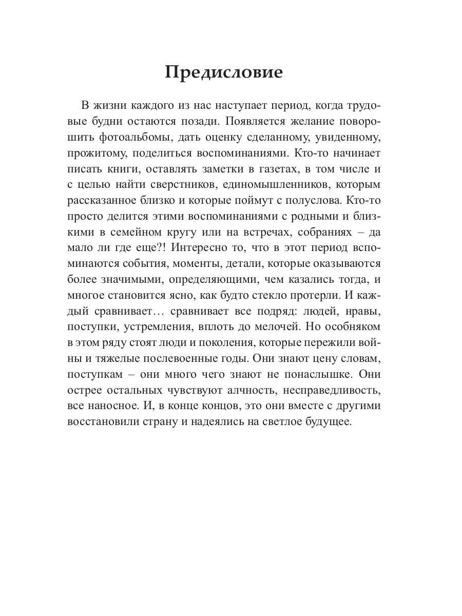 Небогатая юность, но все-таки со своими радостями и упрямыми, искренними надеждами на счастливое, светлое будущее. Зрелые годы, пришедшиеся как раз на то время, когда страна восстанавливалась после войны. Это они поднимали ее из руин своим неустанным трудом. Потом страны не стало. Наступил беспредел лихих девяностых, когда предстояло не жить, а выживать. Но они выстояли и тогда - не сломившись, не предав выстраданных принципов и своей совести.