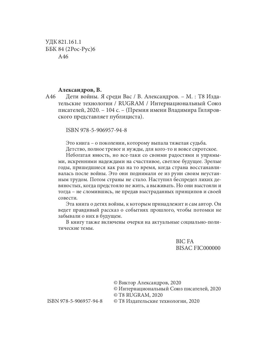 Эта книга о детях войны, к которым принадлежит и сам автор. Он ведет правдивый рассказ о событиях прошлого, чтобы потомки не забывали о них в будущем.