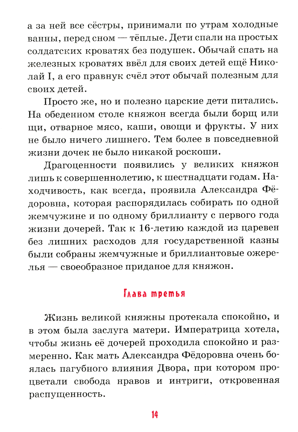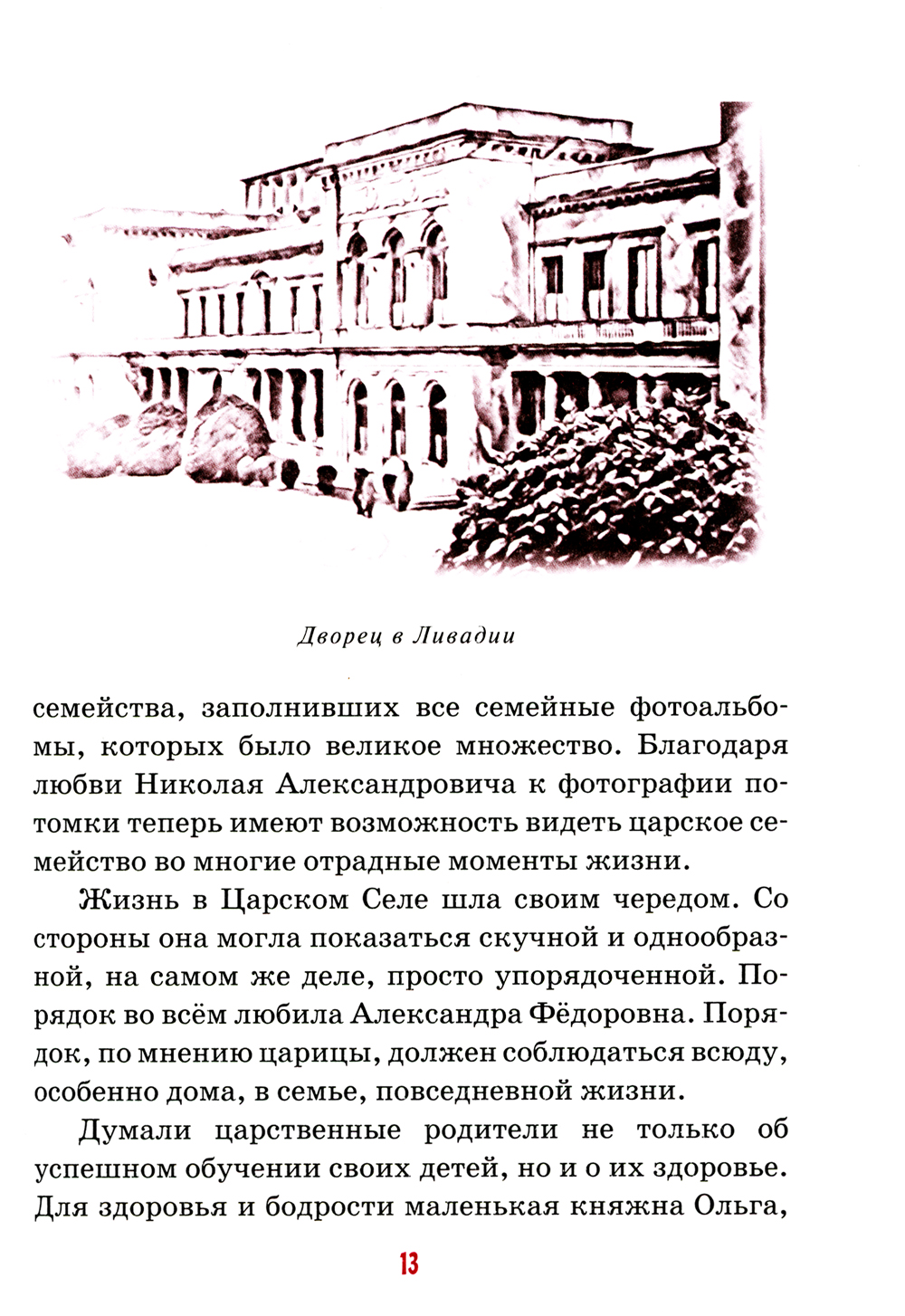 Девизом и эпиграфом к новой книге Ирины Савкиной может стать приведенная в тексте дневниковая запись императрицы Александры Фёдоровны: «Самое богатое наследство, которое родители могут оставить детям, это счастливое детство, с нежными воспоминаниями об отце и матери, оно осветит грядущие дни, будет охранять их от искушения и поможет в суровых буднях жизни, когда дети покинут родительский кров». Из рассказов о царских детях читатели узнают, как в холодном чужом мире может сохраняться и жить семья, в которой главное любовь и все расставлено по местам: родители занимаются своими обязанностями, но живут единым целым с детьми, воспитывая их своим примером и реально проживая с ними все, что готовит судьба.| Издательство | Белорусская Православная церковь |